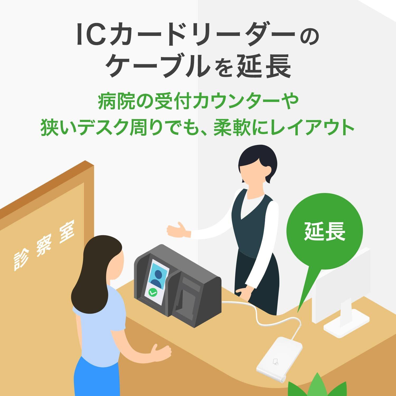 IODATA カードリーダー USB 延長ケーブル USB-A 病院 受付 省スペース ICカードリーダーライター マイナンバー カード スマホ 日本メーカー US2-EXT200
