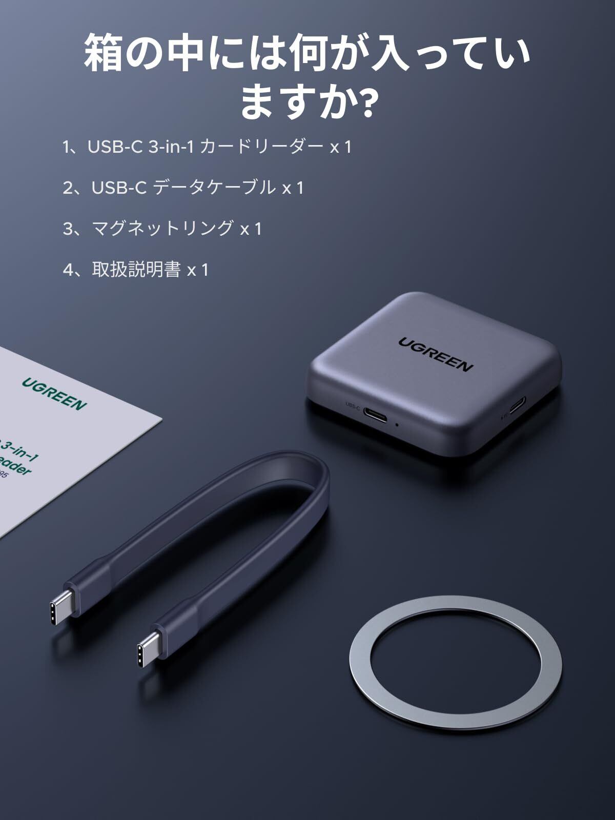 【充電+転送同時·MagSafe·UHS-II高速(市販USB3.0より2倍)】UGREEN sdカードリーダー マグネット式 カードリーダー USBタイプC SD4.0 UHS-II 最大10Gbpsで高速転送 100W PD急速充電 iphone sdカードリーダー iPhone17/16/15/Windows/Linux/MacOS 同時読み取り 2TB ケーブル取り外し可