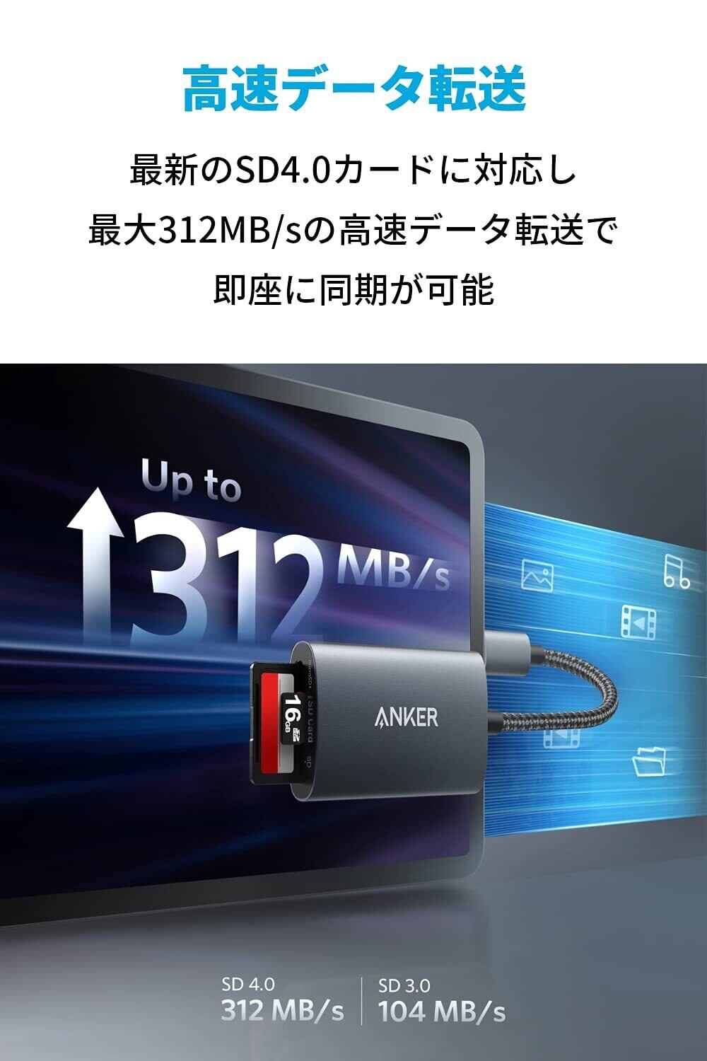 Anker USB-C PowerExpand 2-in-1 SD 4.0 カードリーダー SDXC/SDHC/SD/MMC/RS-MMC/microSDXC/microSD/microSDHC/UHS-I/UHS-II 用/iPhone 15 Android その他各種機器対応