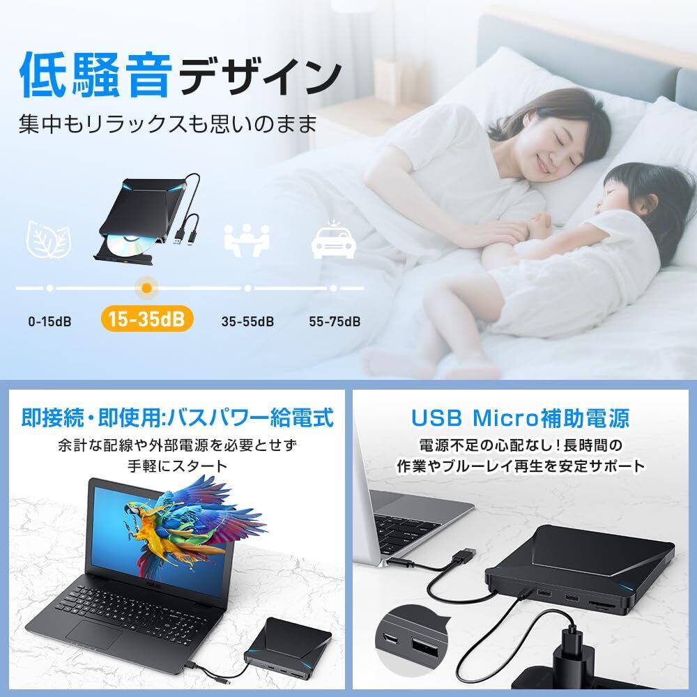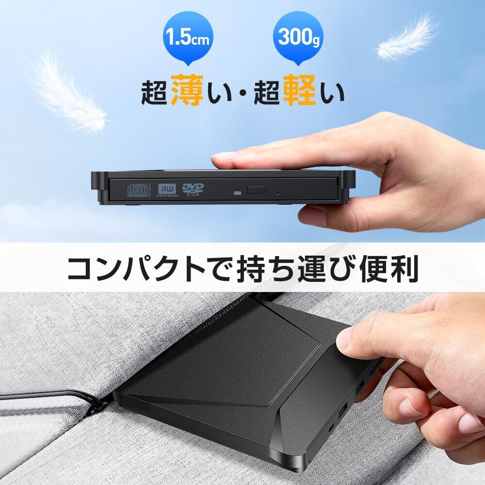 【2025革新型・6In1新モデル】 dvdドライブ 外付け cdドライブ 光学ドライブ 外付け dvd cd/dvdプレーヤー USB3.0 薄型 静音 高速処理 軽量 スリム コンパクト TFカード/SDカード/CD/DVD取り込み/書き込み可能 デスクトップパソコン対応 日本語取扱説明書