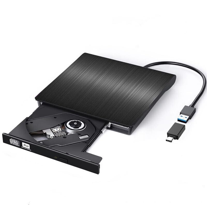 外付け DVDドライブ USB 3.0 type-c 外付CD・DVDドライブ CD/DVDプレーヤー 外付け光学ドライブ PC外付けドライブ ポータブルドライブ CD/DVDドライブ ノートパソコン CD/DVD読取・書込 DVD±RW CD-RW USB3.0/2.0 Window/Mac OS両対応 高速 静音 超スリム 薄型 コンパクト(Black)