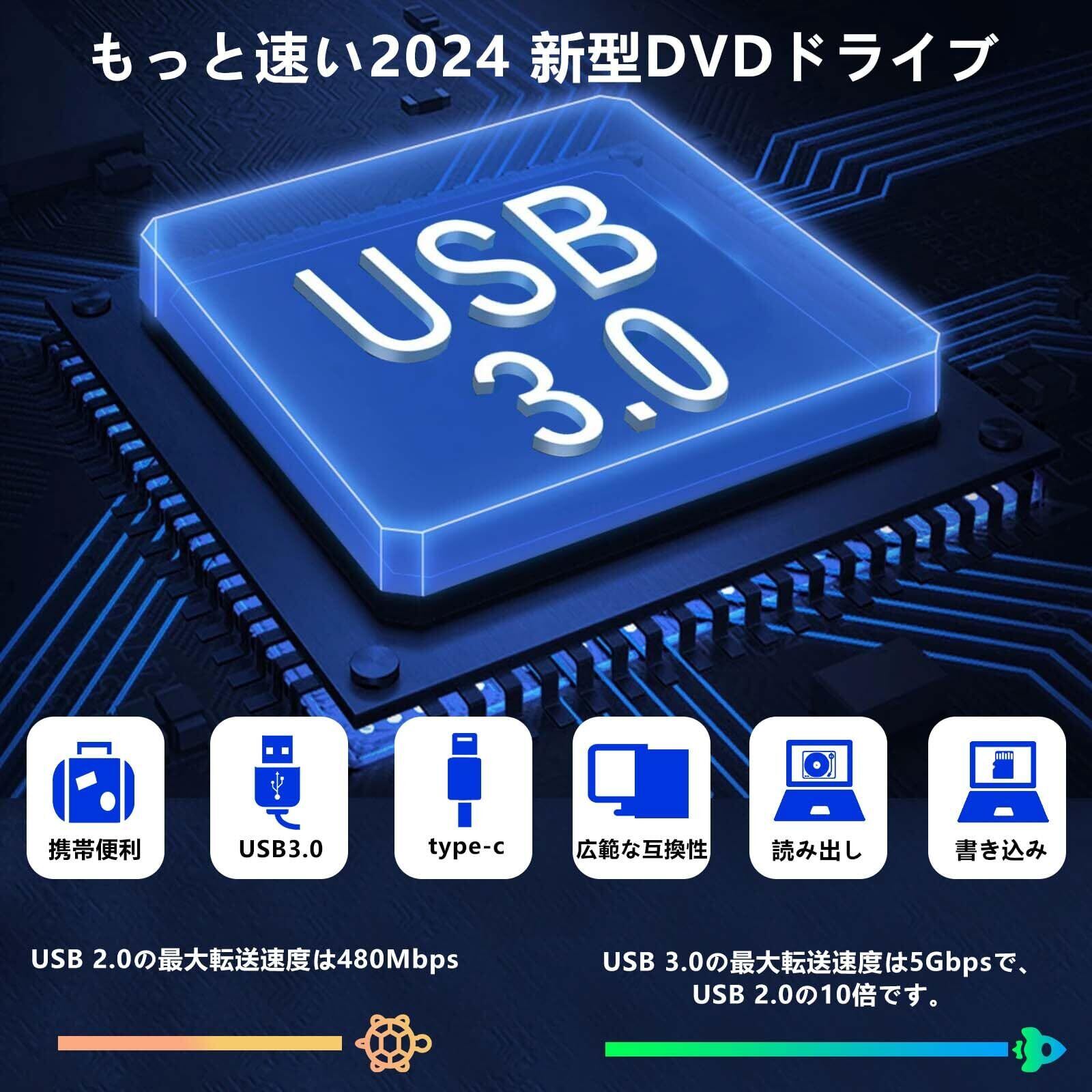 【USB3.0高速転送・読取&書込可】最高のパフォーマンスを求める方へ。USB3.0接続で、データ転送速度も向上。仕事や趣味に最適な、高性能かつ信頼性の高い 外付けdvdドライブ です。さらに、 cd dvdドライブ 外付け は、8X DVDと24X CDの高速読み取り&書き込み能力を備え、データの読み込みと保存が迅速かつ効率的に行えます。