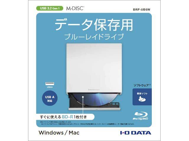 保存ソフト付きポータブルブルーレイドライブ USB A対応 アイ・オー・データ BRP-UB6W