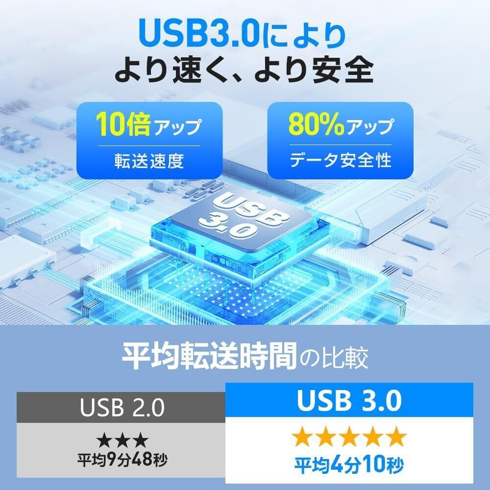 【USB3.0による超高速転送、ストレスのない快適操作】 最新のUSB3.0ポートを採用し、最大5Gbpsの高速転送を実現する 外付けcdドライブ 。 従来のUSB2.0と比べて大幅なスピードアップを果たし、大容量データもわずかな時間で転送可能な cdドライブ 外付け です。映画や音楽も途切れることなく滑らかに再生。 電源供給も通信も1本のケーブルで完結する洗練された設計が、美しさと機能性を兼ね備えた心地よい操作体験を提供します。