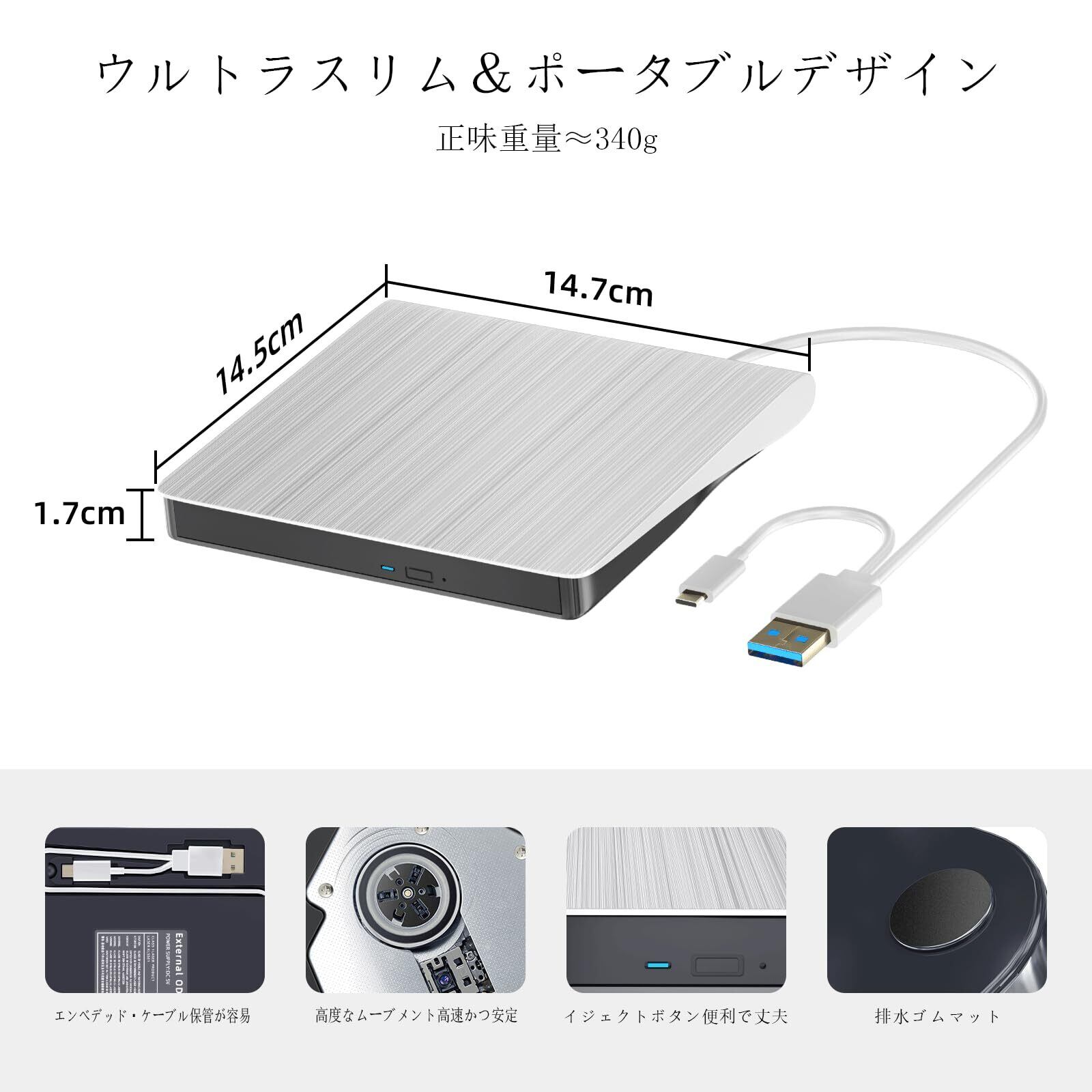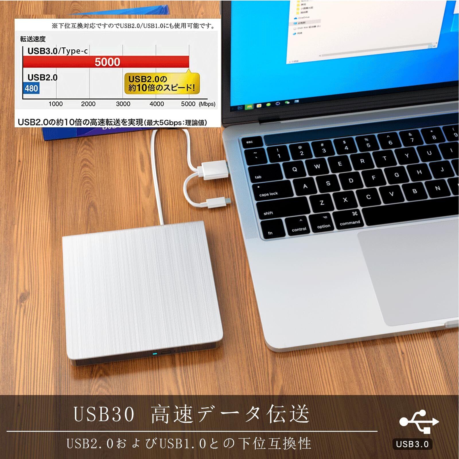 のブルーレイ ドライブ外付けは、最大速度 5Gbps の高度な高速 3.0 インターフェイスを採用しており、従来の 2.0 (480Mbps) より 6 倍高速です。 またType-C (USB-C)端子ので、強力なエラー修正機能、耐衝撃性、低消費電力により、データ伝送が安定をしております。 ブルーレイドライブ外付け本体も薄くし、軽くし、また内蔵ケーブルは本体に収納できるので、アタッシュケースやカバンに入れ、持ち運びやすいです。事務やオフィス場合は、最適なのブルーレイドライブ外付けをおすすめです。