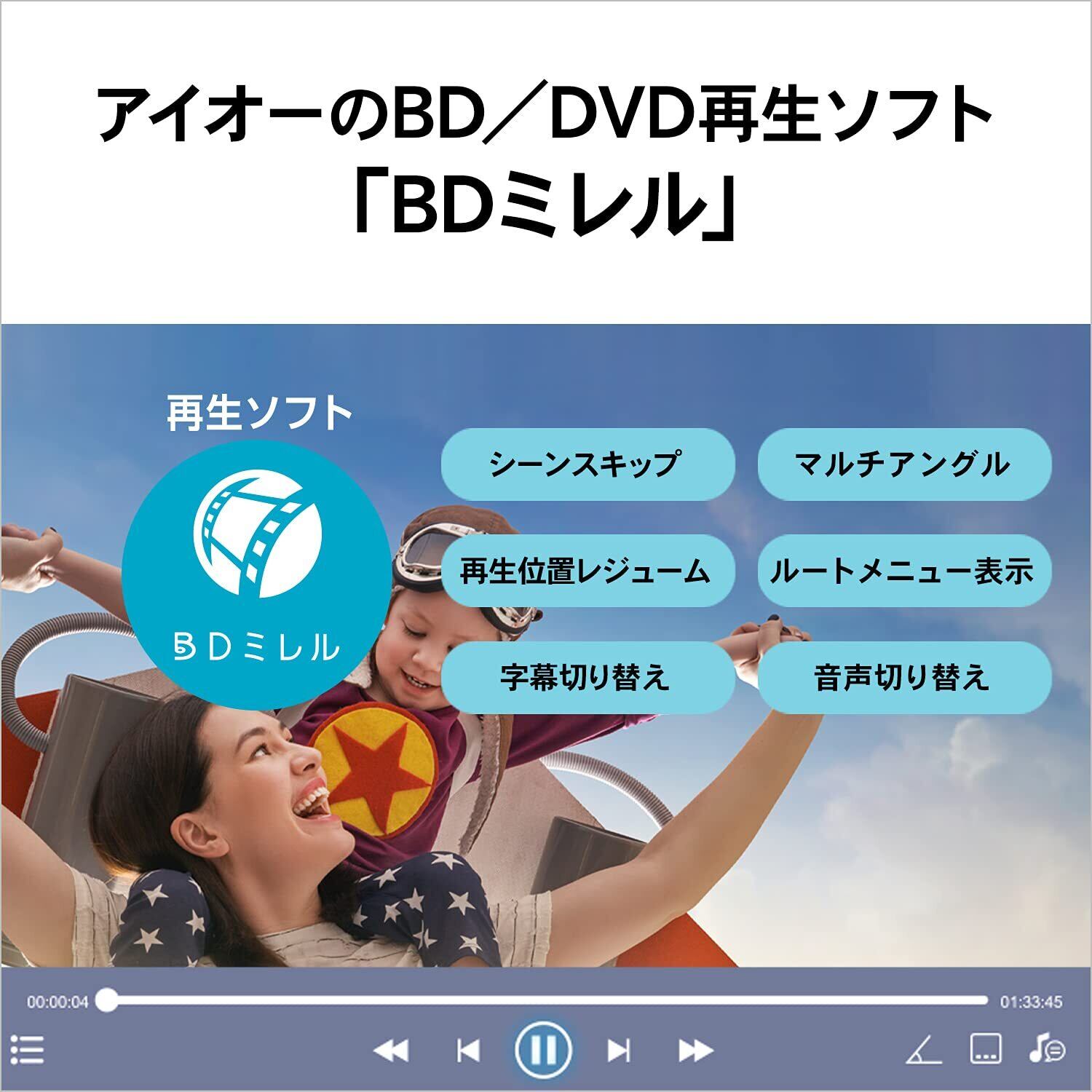 ■Type-C/USB A 搭載のパソコン対応ポータブルブルーレイドライブです。 ■新旧幅広いパソコンに対応し、バスパワーで動くので、場所を選ばずにBD/DVDの編集をはじめ、映画鑑賞や仕事のデータの書き込み作業などを行うことができます。 ■ビデオ編集ソフト「Roxio Creator Premier BD」付きで、ビデオカメラなどで撮影した映像をパソコンで簡単に編集が可能です。 ■BGMやオリジナルメニューを追加して、自由に思い出を残すことができます。 ■すぐに使えるバーベイタム製のBD-Rメディアを1枚添付しています。