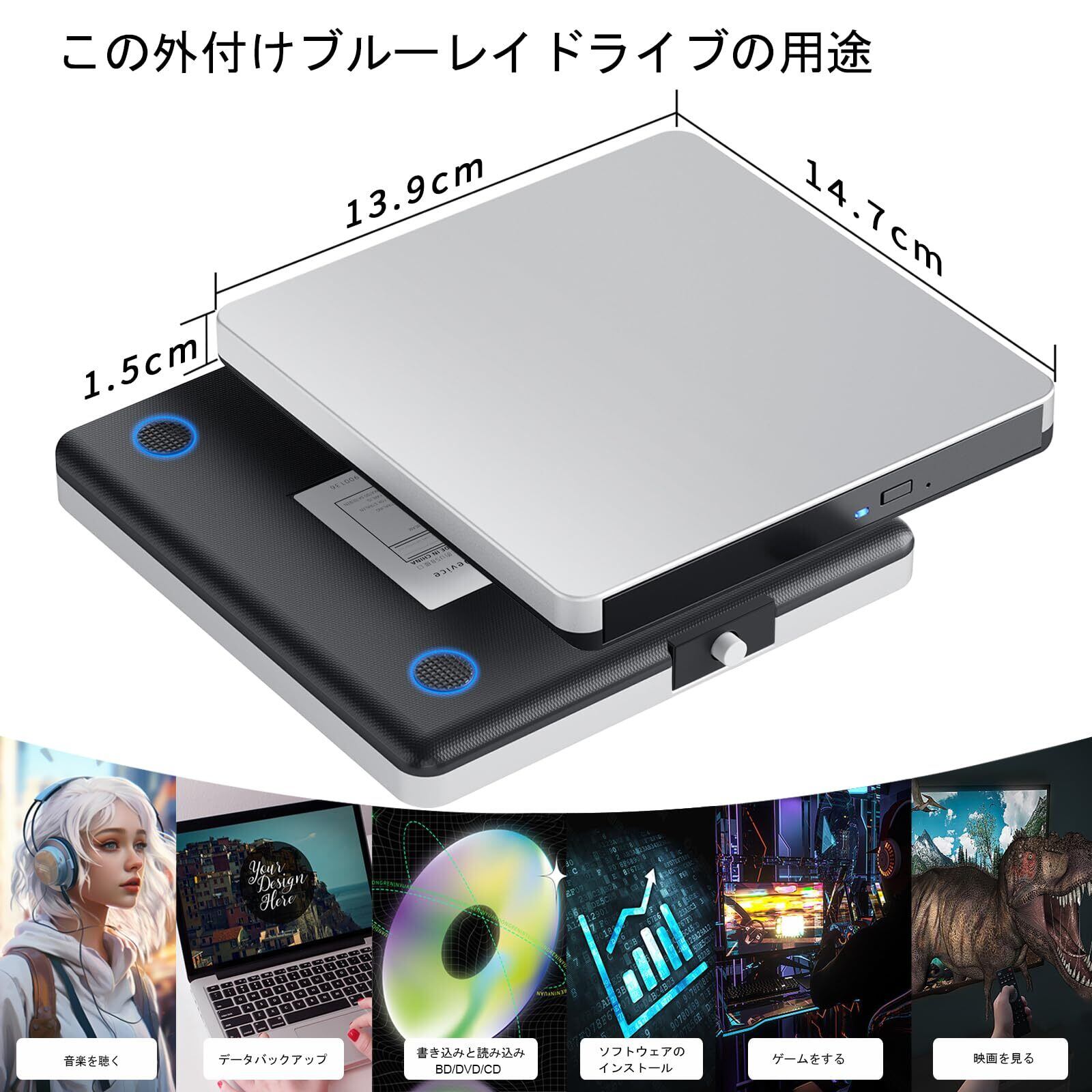 ️ 【ご注意】:ブルーレイドライブには書き込み・再生ソフトが付属していないため、別途購入が必要です。また、車、Chrome、テレビ、BDレコーダー、タブレット、Surface/MACタブレット、プロジェクター、スマートフォンでのブルーレイ再生には対応しておりません。十分な電力供給のため、USBハブや延長ケーブルの使用は避けてください。ご注意:十分電力供給を確保するために、USBハブ と USB コネクタをご利用しないでください。