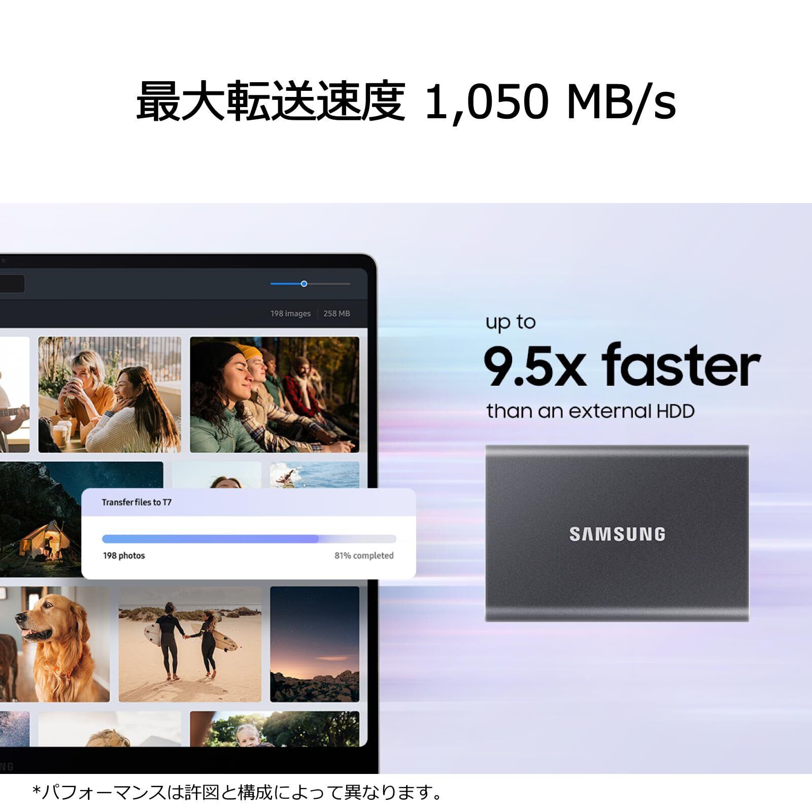 Samsung T7 1TB 外付けSSD 最大転送速度1,050MB/秒 USB3.2 Gen2(10Gbps, Type-C) グレー iPhone15/16シリーズ動作確認済み MU-PC1T0T-PD/EC 国内正規品【特典付モデル】