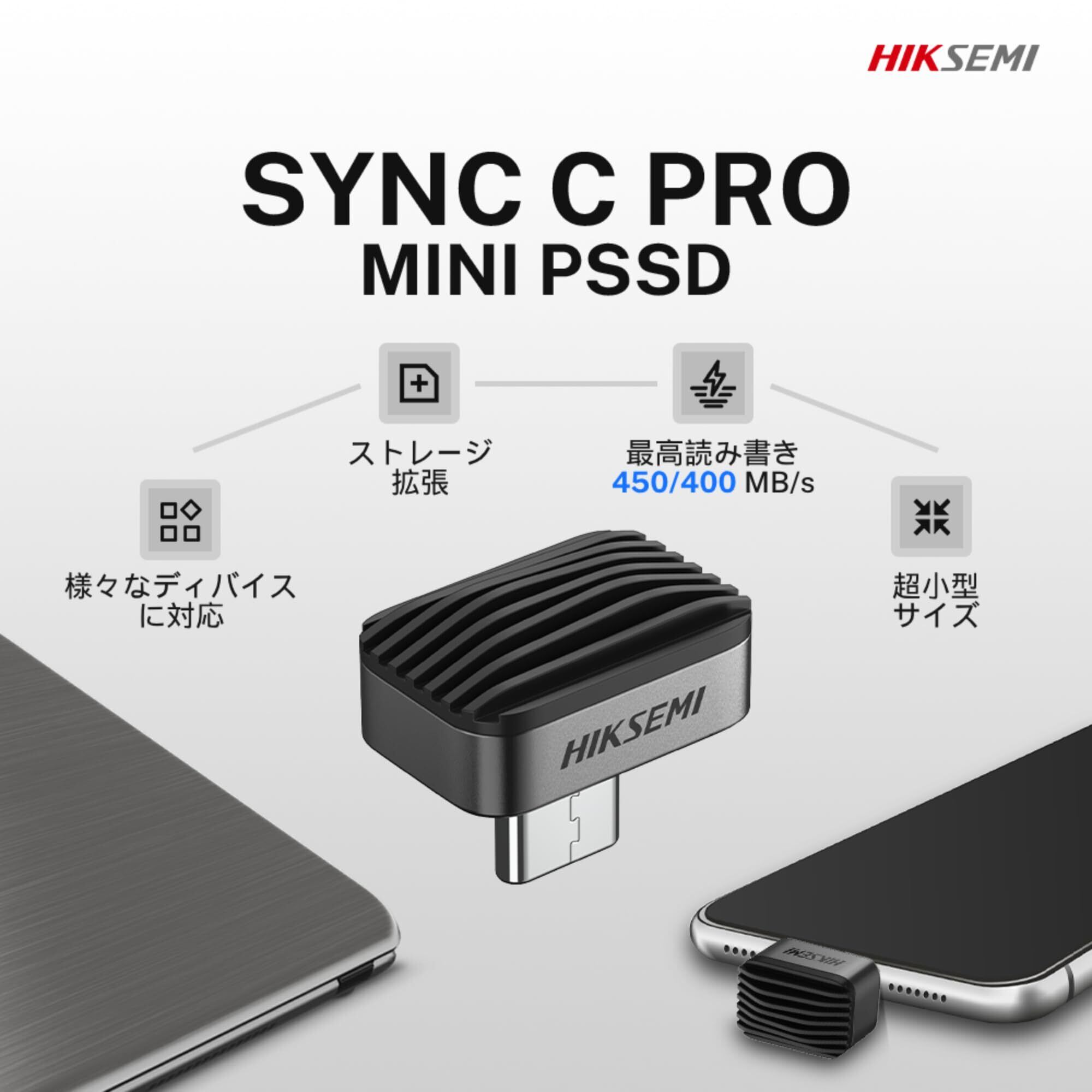 【HIKSEMI史上最小・最軽量の外付けSSD】HIKSEMI Sync C Proは、接続時の飛び出し幅が約13.5mm、重さはわずか2.8gの超小型外付けSSDです。コンパクト設計により、ノートパソコンに挿したままでも気にならず、持ち運びにも便利です。ダークグレイのスタイリッシュなデザインで、どのデバイスとも自然にマッチします。