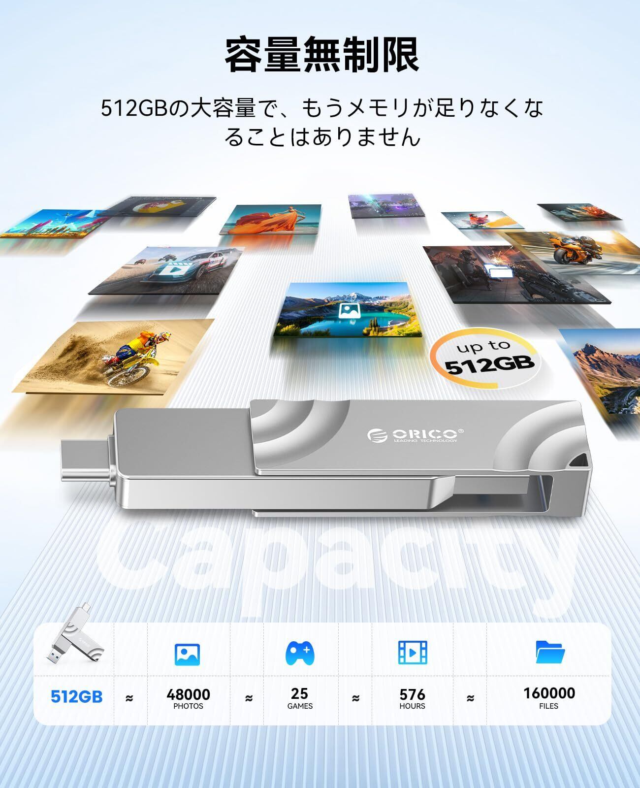 ORICO 外付けSSD 512GB usb3.2 (Gen2)読み取り速度1000mb/秒、スライドカバーなし(PS5/PS4/テレビ録画対応)、360°回転アルミケース、耐衝撃設計、大容量ストレージ ,3年間のメーカーで、スマートフォン、タブレット、ノートパソコンを確実に保存します — G201