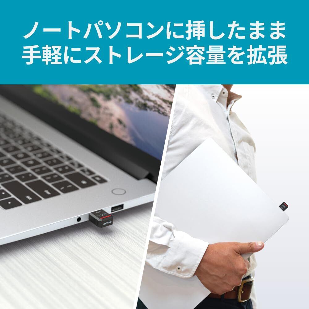 【パソコンに挿して容量拡張】飛び出し幅を抑えた設計により、ノートパソコンに挿したままでも気になりません。挿すだけで手軽に容量拡張が行えます。