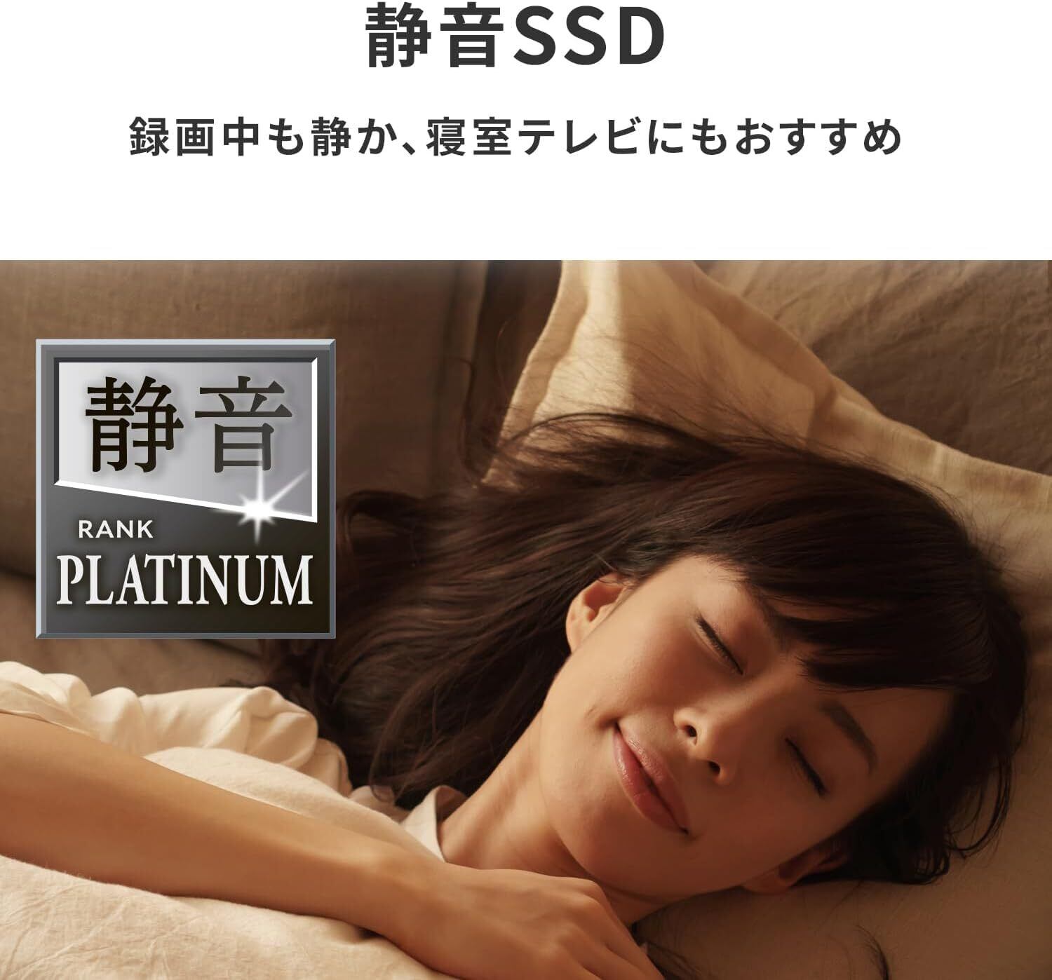 【寝室での録画にもおすすめ。録画中も音が気にならない】SSDは、ハードディスクと異なりディスクの回転がありません。そのため録画中も無音で、ハードディスクでの録画でありがちなカリカリ音が気になることもありません。