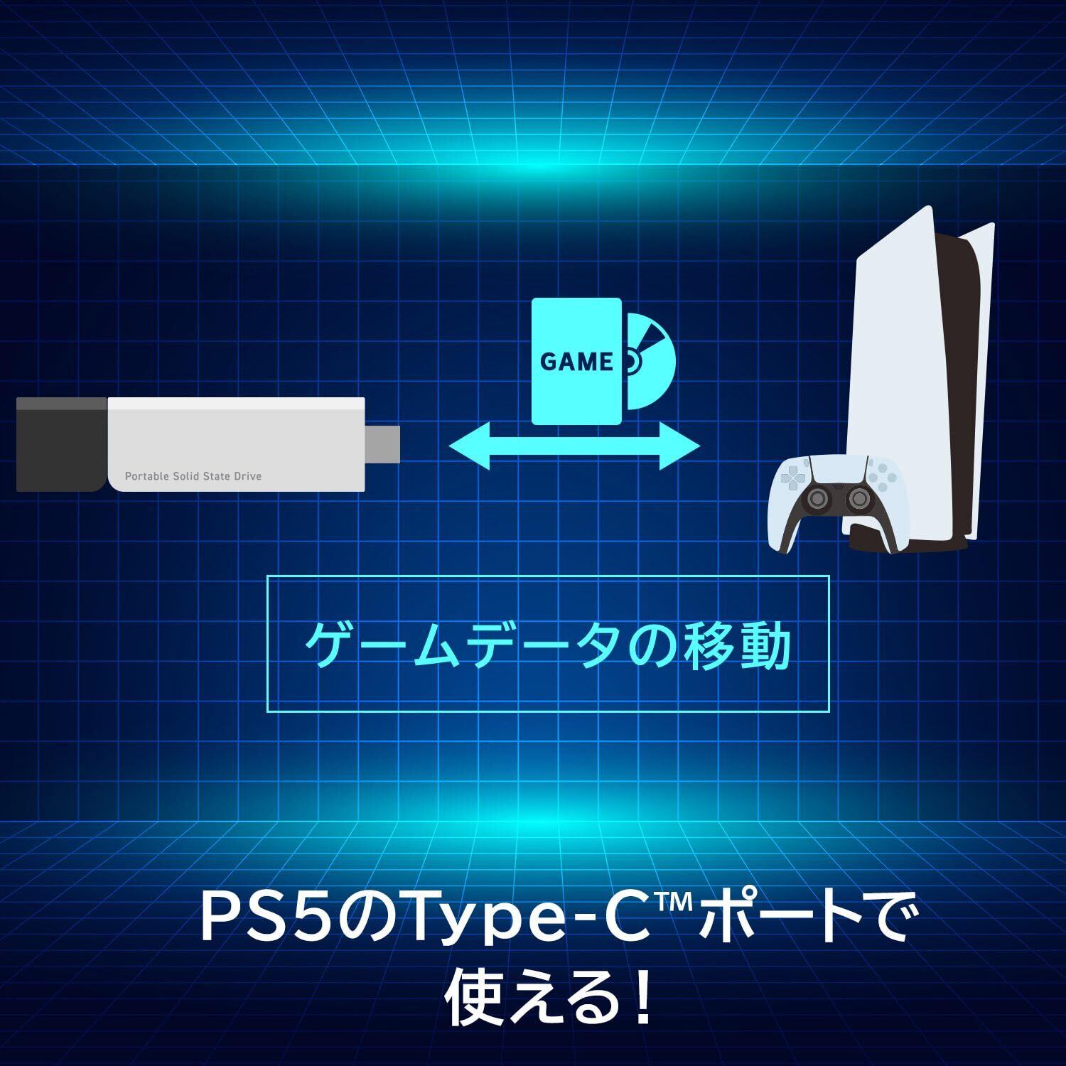 【 PS5 のType-Cポートで使える】PS5の拡張ストレージとして使用できます。容量不足解消、再インストールの時間短縮が可能です。ゲームディスク(ダウンロード)から再インストールするより、外付けSSDからゲームを移動させた方が再プレイする際の準備時間を短縮できます。PS5前面のType-Cポートに変換アダプタ不要で接続できます。