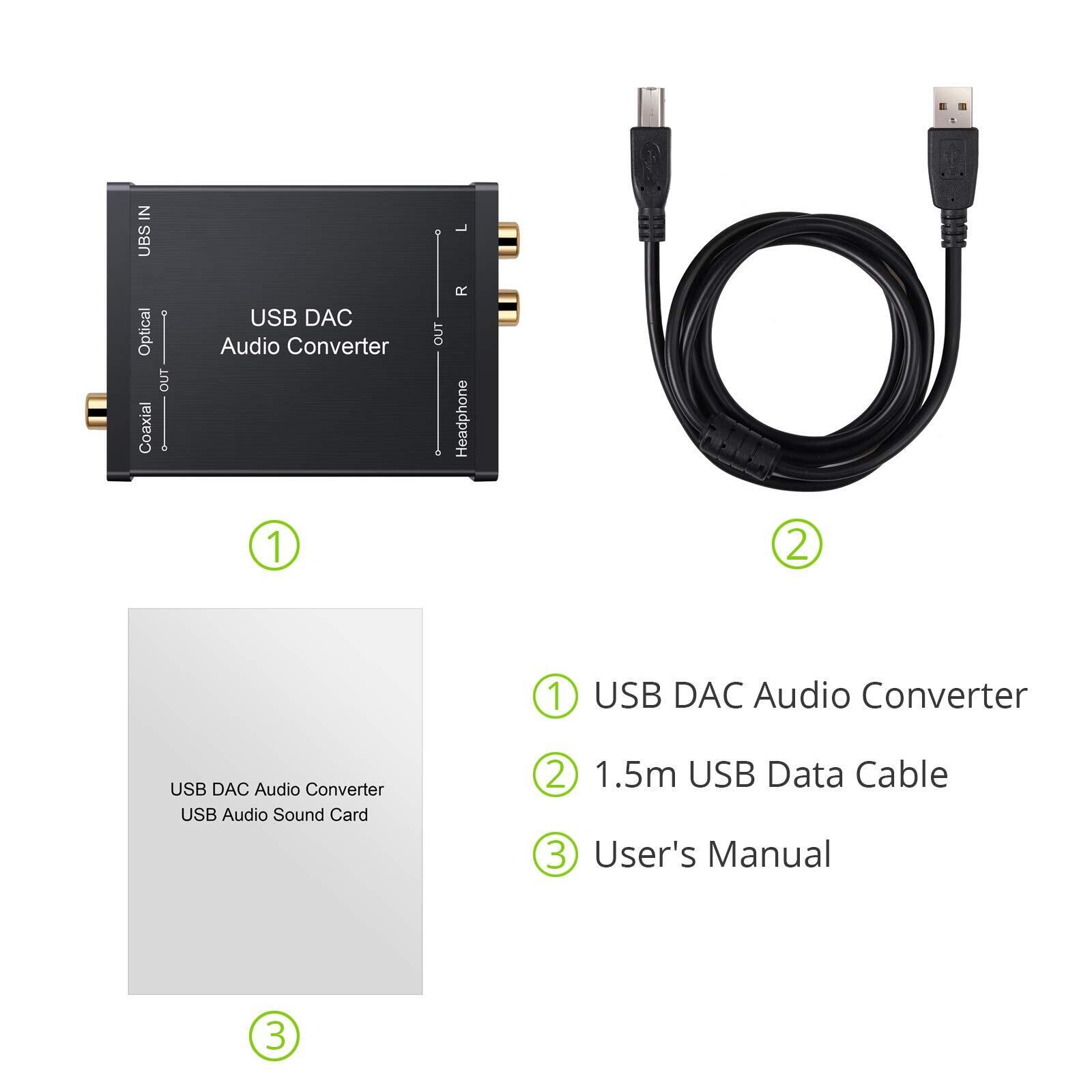 LiNKFOR USB DAC 音声変換機 USB入力 光 同軸 RCA 3.5mmヘッドフォン出力 USBサウンドカード USBケーブル付属 Windows XP/Mac OS-X /PS4 /PS3 /Xbox 360 /Xbox One S対応
