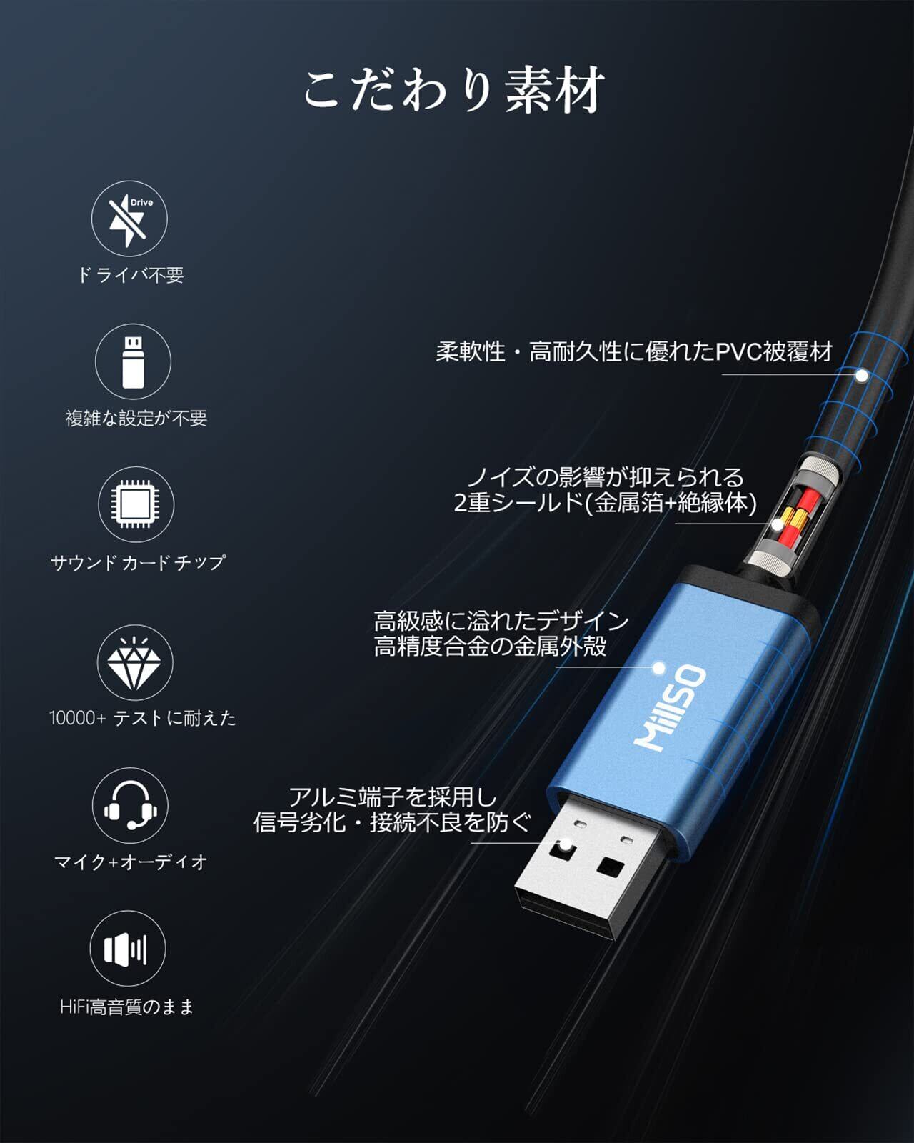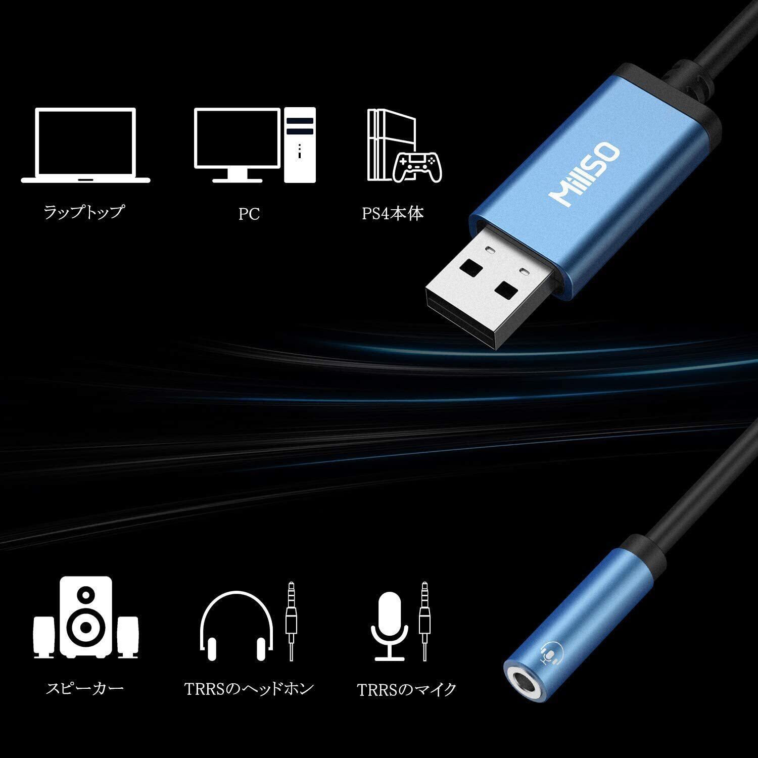 MillSO USB オーディオ 変換アダプタ 外付け サウンドカード USBポート- 4極(TRRS) ステレオミニジャック 3.5mm 変換 Windows/Vista/XP、PS5、PS4、Mac OS/X、Linux、Chromebook、Surface 3 pro、Raspberry Piなどに対応