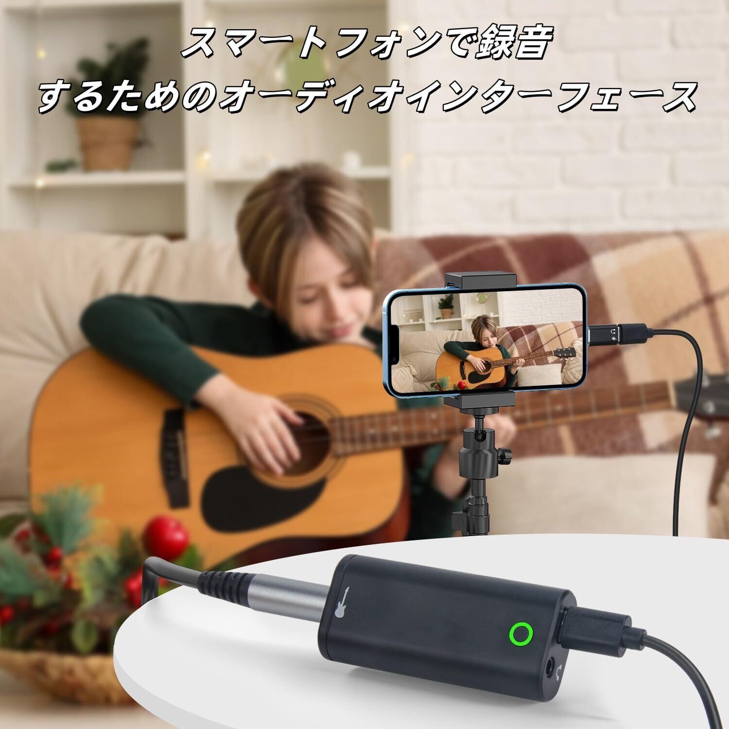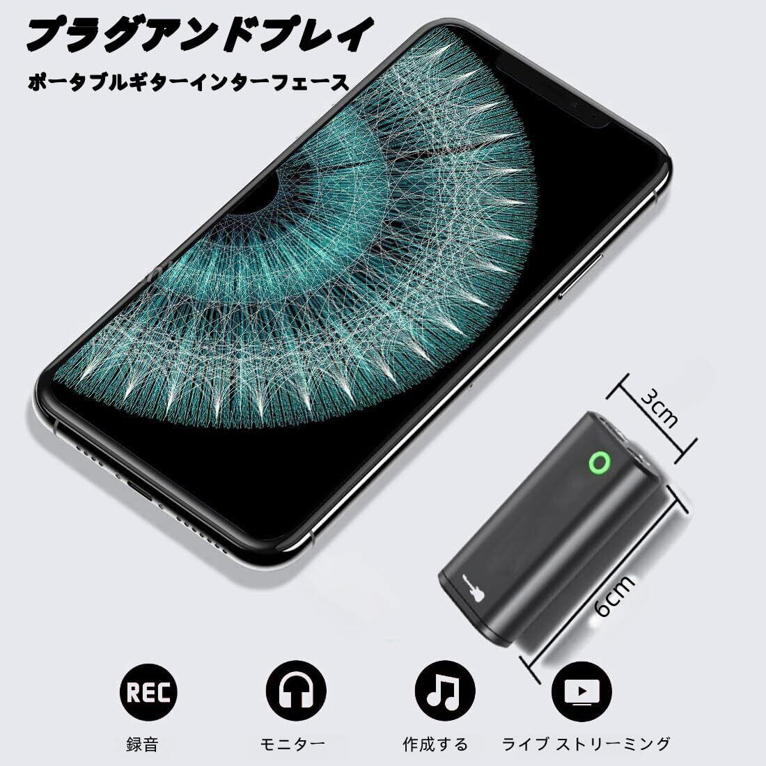 ギター用オーディオインターフェース ポータブル 内蔵録音サウンドカード ライブストリーミング用 phone、i-Pad、Androidスマートフォンやタブレット用 ドライバー不要 プラグアンドプレイ