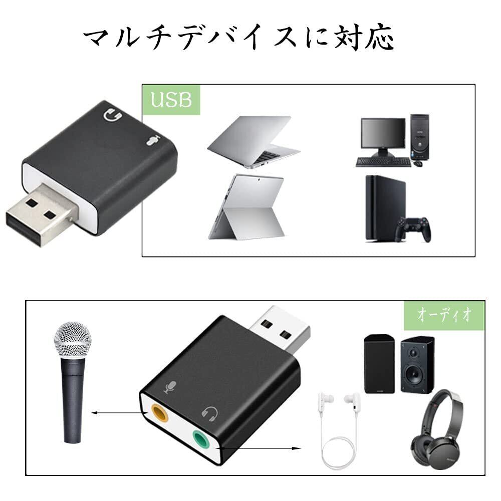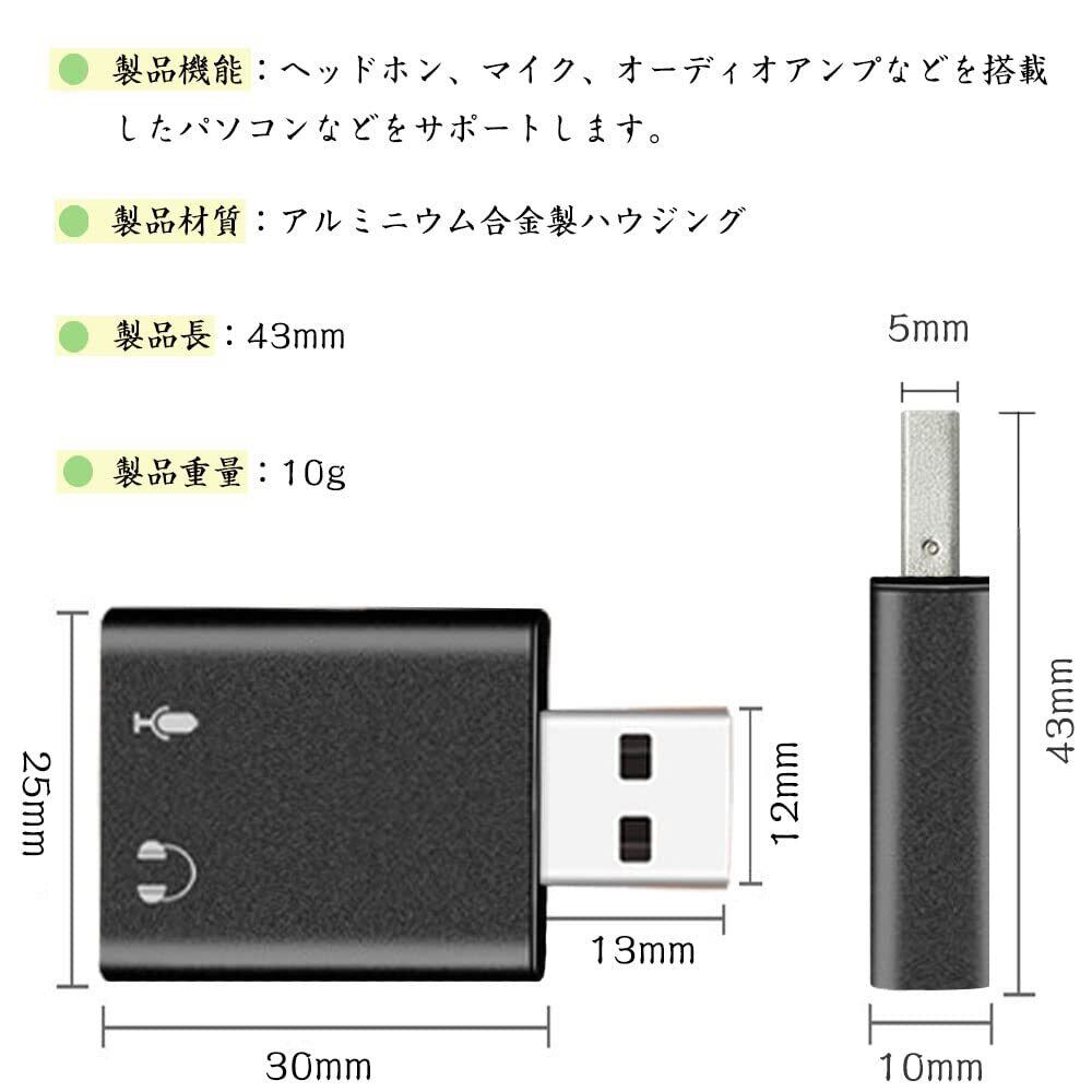 1.端子を3.5mmに変換できるUSBオーディオ変換アダプタで、スピーカーやプラグヘッドなどのマイク入力や音声出力にも使えます。3.5 mmオーディオ出力ジャックや壊れたオーディオポートがないパソコンの代わりとして、携帯電話でpcのゲーム音だけを再生してゲーム音を記録したり、Skypeで会話をしたりすることができます。