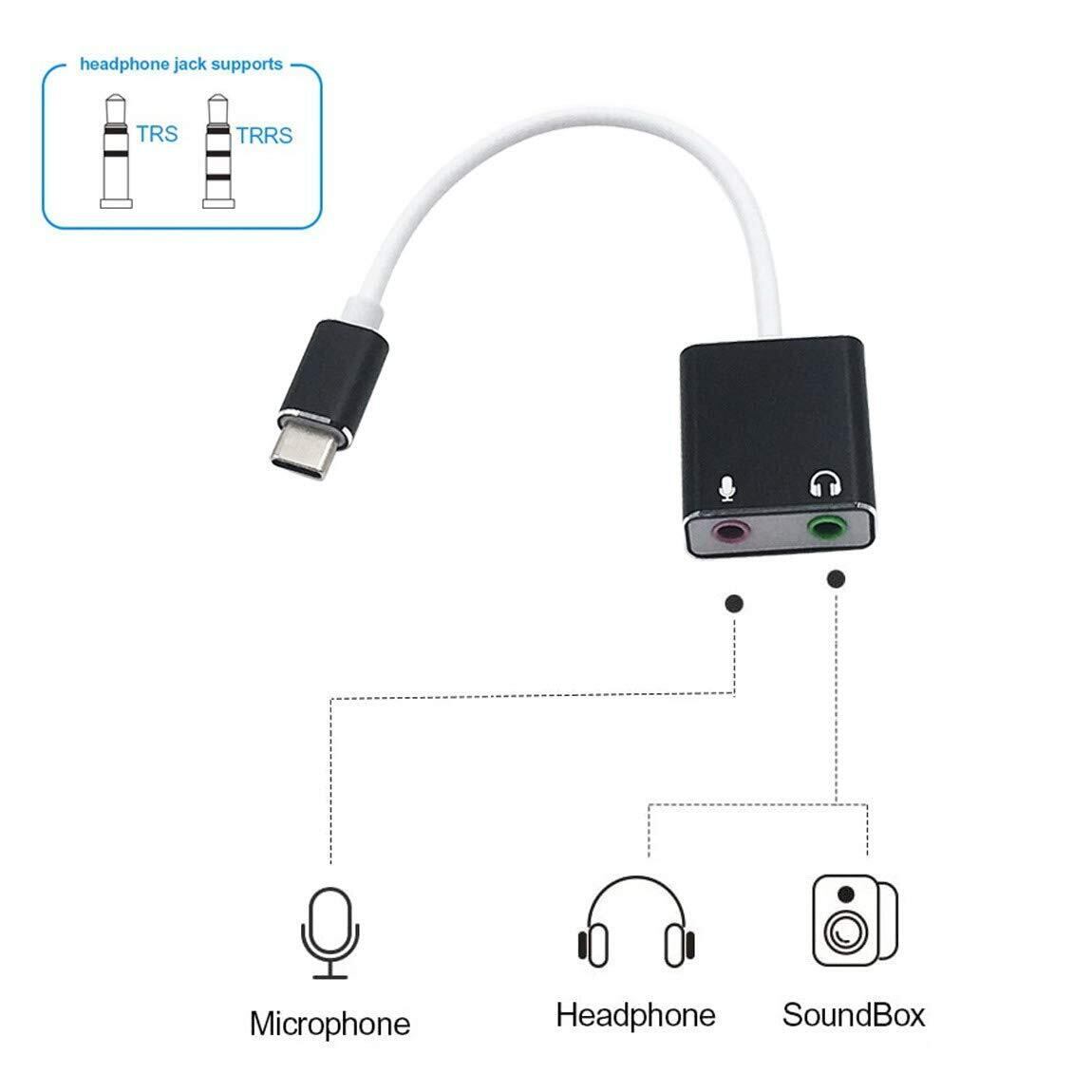 Type-C to 3.5mm変換アダプタャック ヘッドホン/マイク端子 プラグアンドプレイ Type C外付け サウンドカードUSB-C オーディオ 3.5MM変換アダプタ