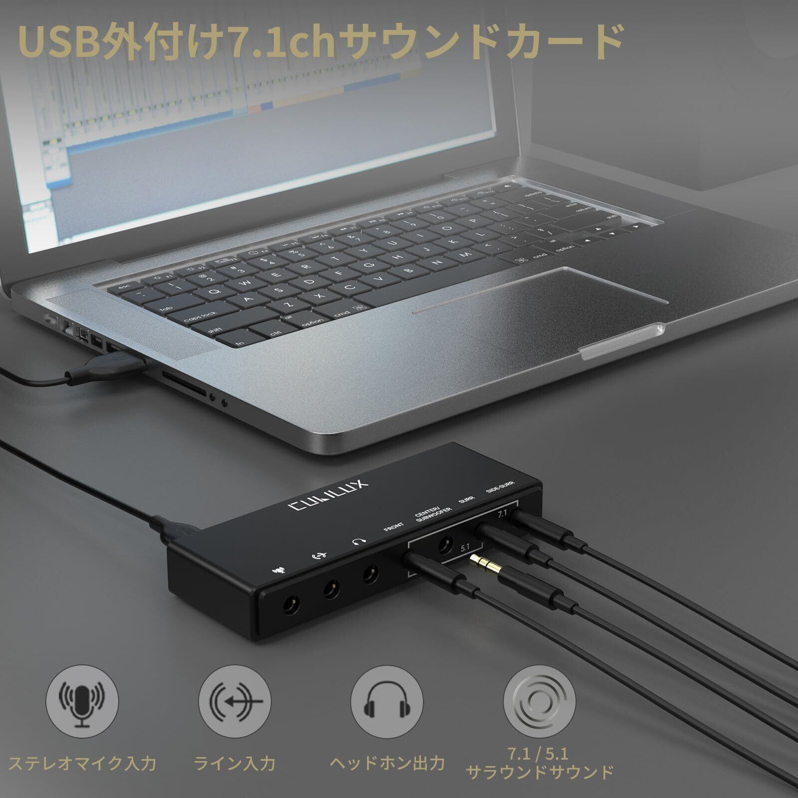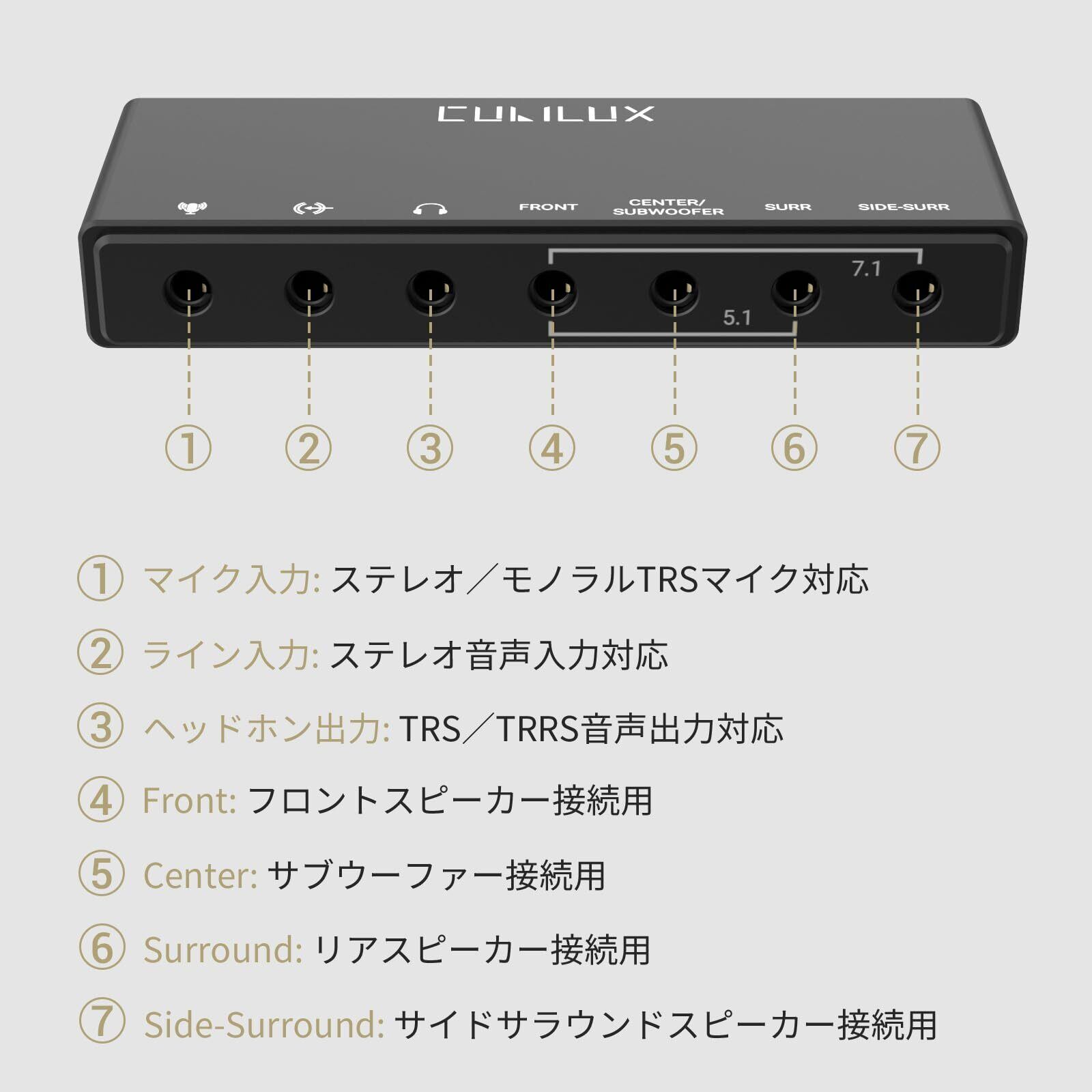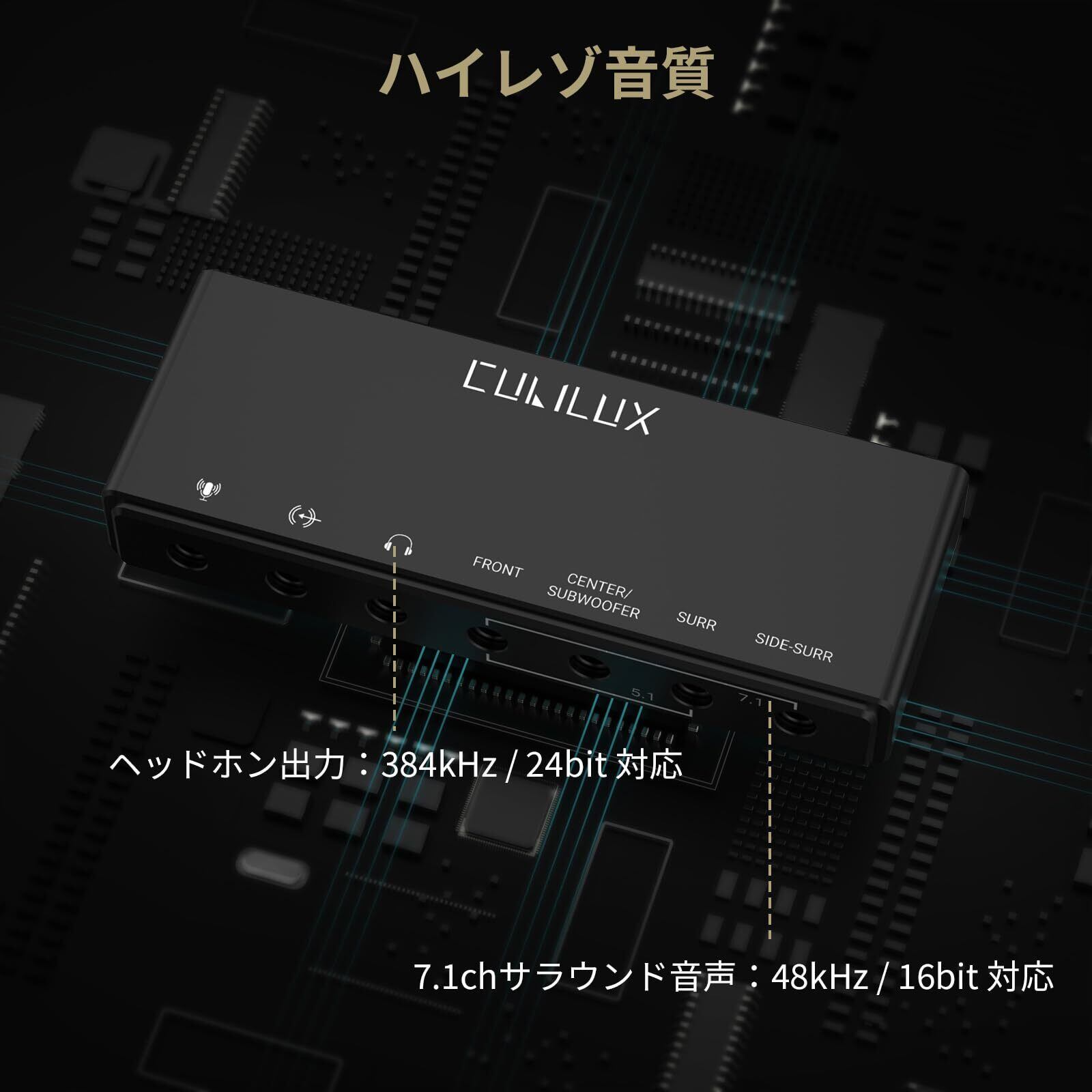 Cubilux CA7 USB 7.1/5.1 サラウンド対応サウンドカード – 384kHz ハイレゾ対応 外付け 7.1ch オーディオインターフェース – ヘッドホン出力・マイク入力・ライン入力対応 – Windows/Mac 対応