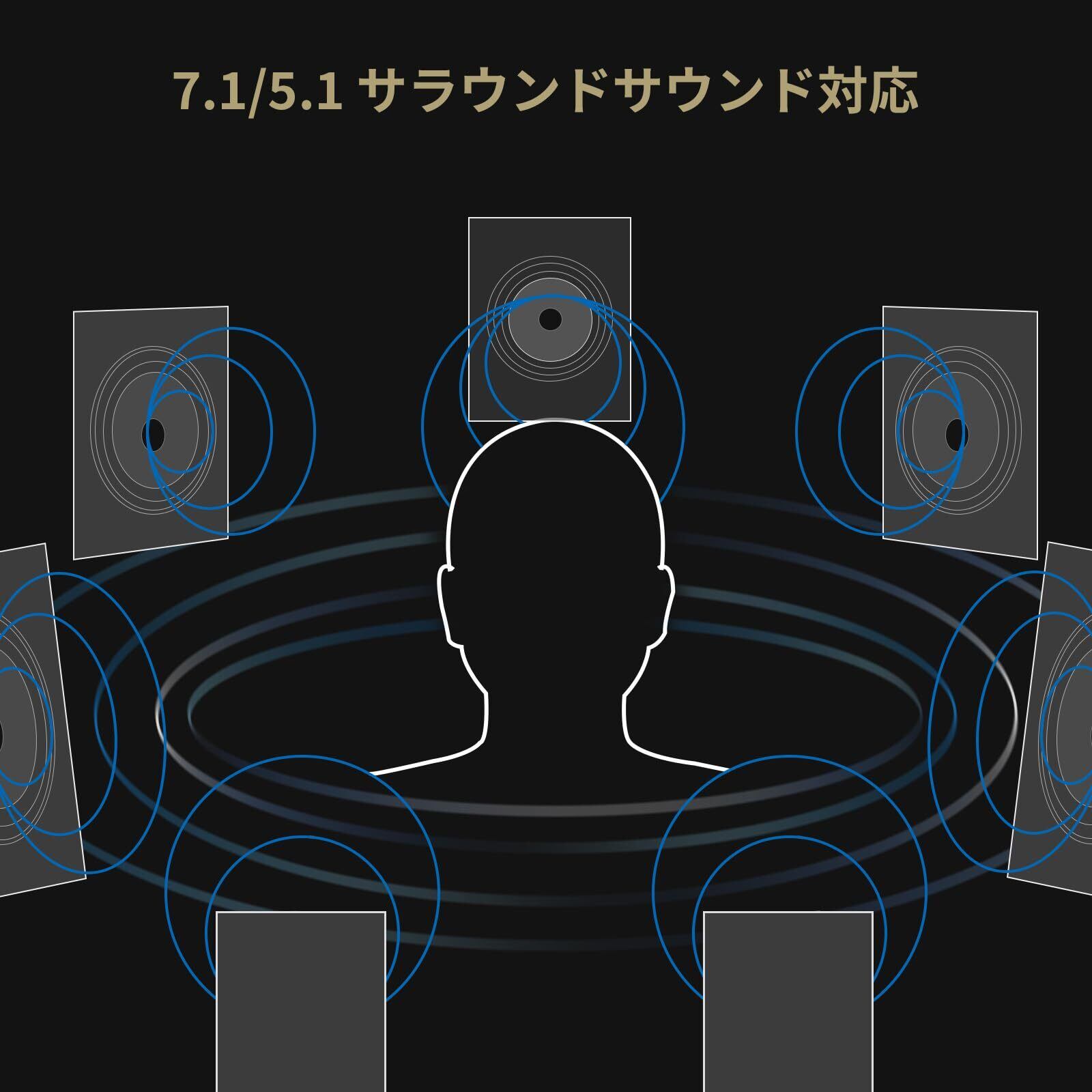 【臨場感あふれる7.1chサラウンド】7.1chおよび5.1chのサラウンド出力に対応。ステレオヘッドホン出力、ステレオマイク入力、ライン入力にも対応し、ゲーム・映画・音楽など多彩な用途に最適です。