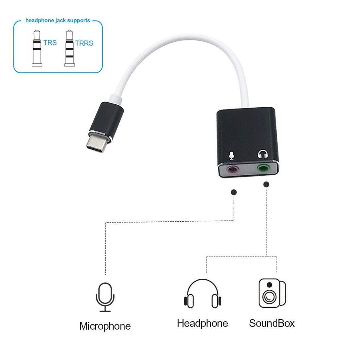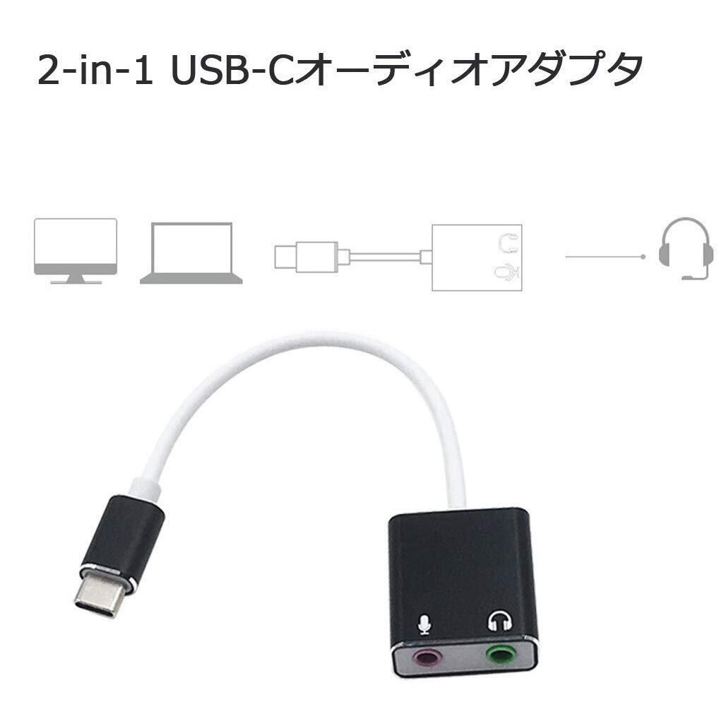 USB Type-C外付けサウンドカード3.5mm CタイプオーディオカードアダプターUSB-Cとジャック3.5mmヘッドフォンMacBook用のマイクサウンドカード。