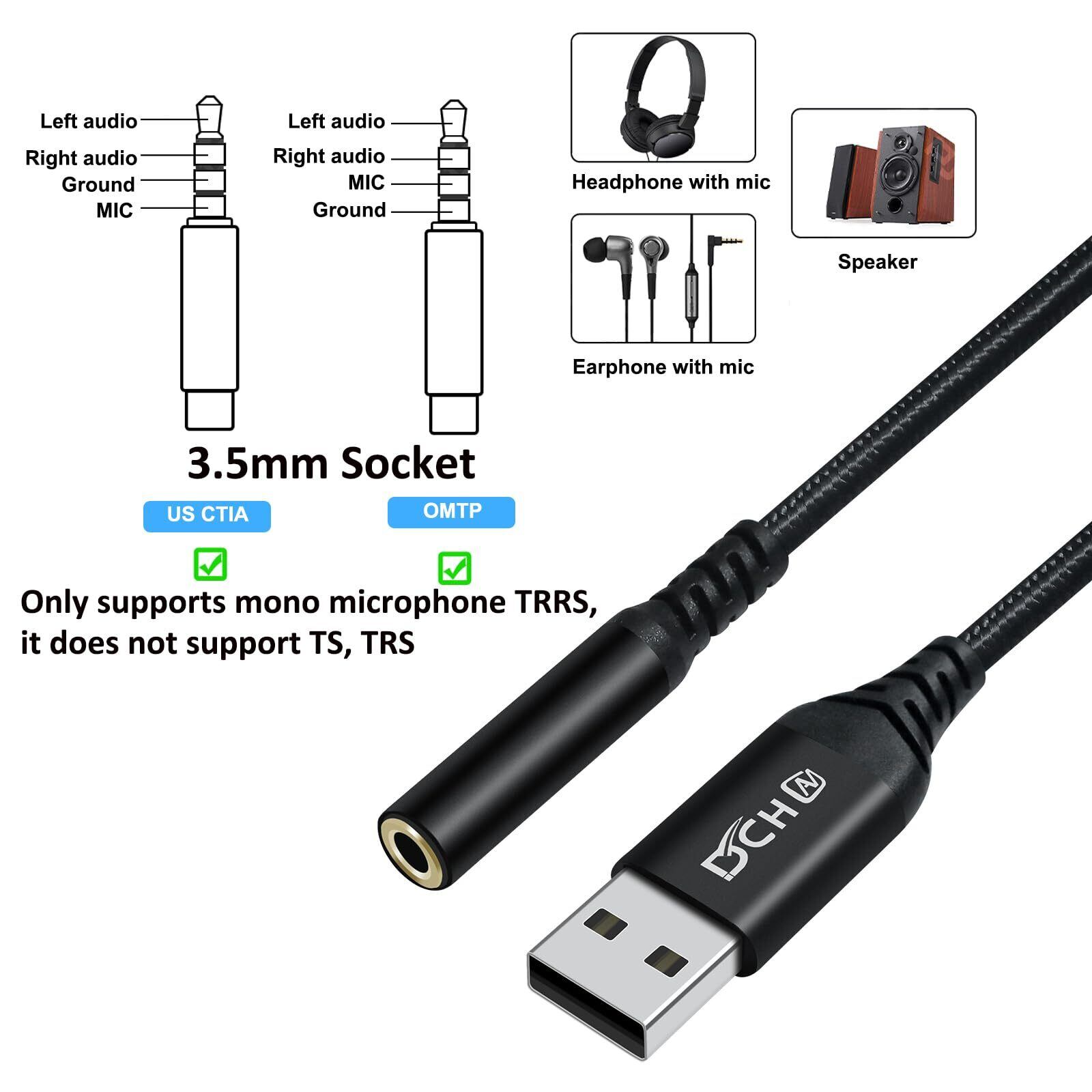 USBオーディオ変換アダプタはUSBポート経由でアナログ音声の入出力が可能で3.5mm TRRSステレオミニポート付きのヘッドホン·マイク端子を一体化に設計されており、PC上のオーディオポートやオーディオカードが壊れたり不具合があるときなどに、代替として使用できます。