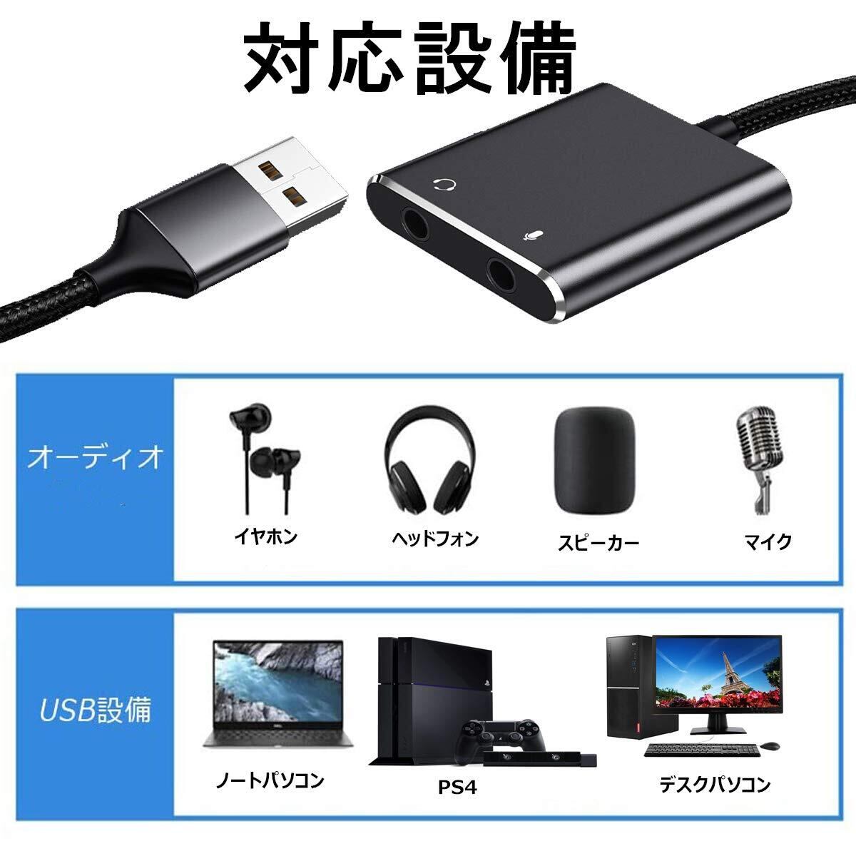 USB 3.5mm オーディオ 変換アダプタ 外付け サウンドカード USBオーディオジャックアダプター USB 3.5mm ミニ ジャック ヘッドホン・マイク端子 USB to 3.5mm オーディオ変換アダプタ Windows/Vista/XP、Mac OS/X、PS4、Linux、Chromebook、Windows Surface 3 pro、Raspberry Pi等対応 (ブラック)