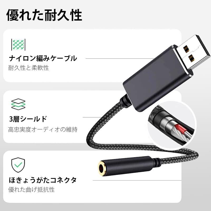 usb to 3.5mm オーディオケーブル アダプタ USBオーディオ変換アダプタ サウンドカード USBポート-3極(TRS)/4極(TRRS)3.5mmミニジャック変換ケーブル Mac OS/X Windows Surface 3 pro Chromebook Raspberry Pi Windows/Vista/XP等対応 25cm