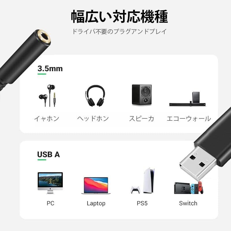 【幅広い互換性】3.5 mm auxメスはCTIA標準TRRSイヤホンとマイクを支持している。USBプラグはWindows 10/8/7/Vista/XP、Linux、Mac OS X Google Chromebook、Raspberry PiとPS4、PS5、Windows Surface 3 proなどと互換性がある。注意:テレビ、自動車、PS3、アンプ、CDプレーヤー、XboxまたはトラックUSBポートには適用されない。