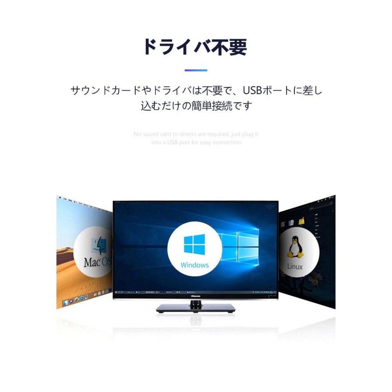 【ドライバ不要】サウンドカードやドライバは不要で、USBポートに差し込むだけの簡単接続です。内部にチップセット付きなのでお使いの時やや熱を出る状況もある可能性がありますが、ご心配なく使用して下さい。