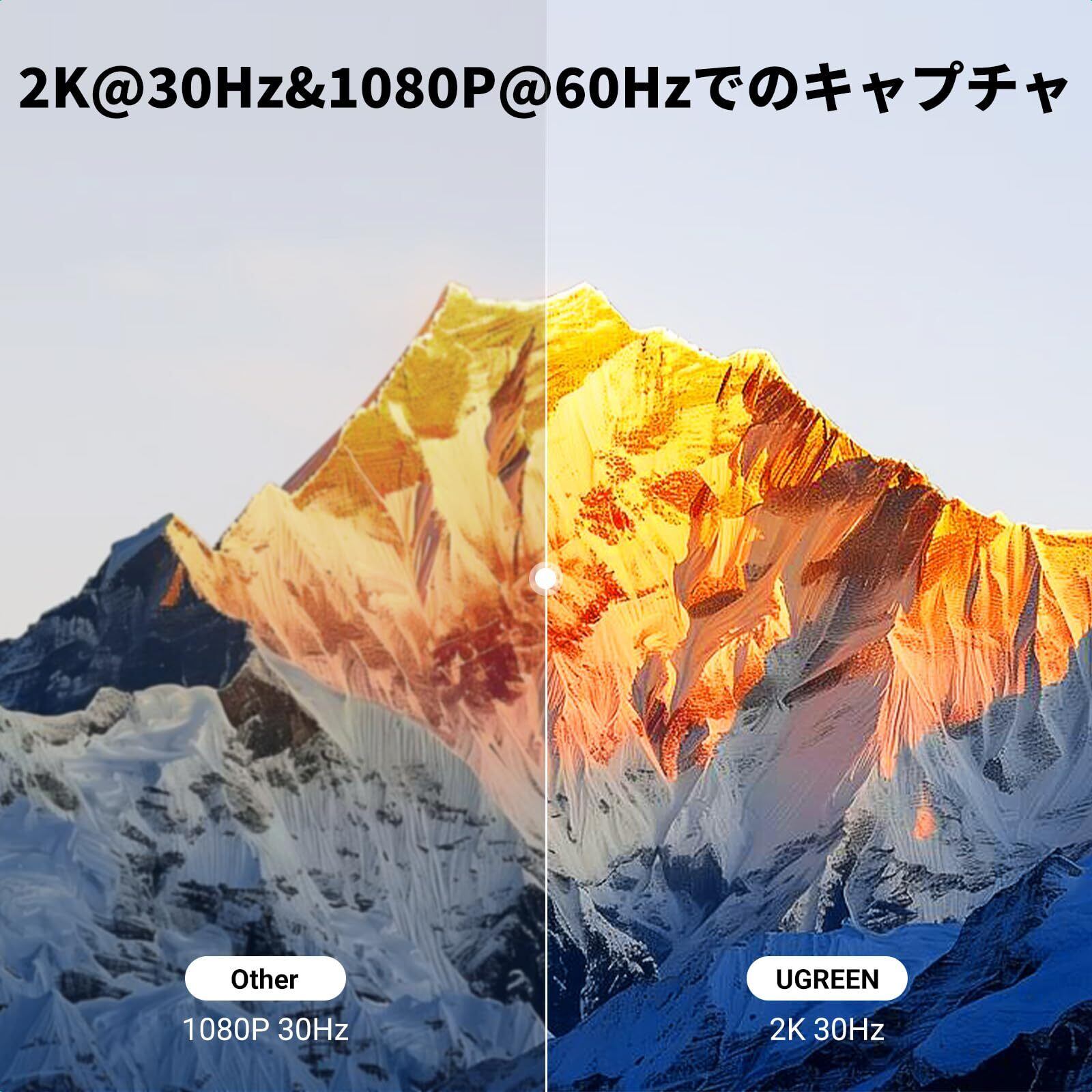 UGREEN 2K@30Hz HDMI キャプチャーボード 4K@30Hz パススルー機能 USB 3.0 フルHD 1080P 60Hz 超低遅延 録画 、Switch、PS5、Xboxなど対応