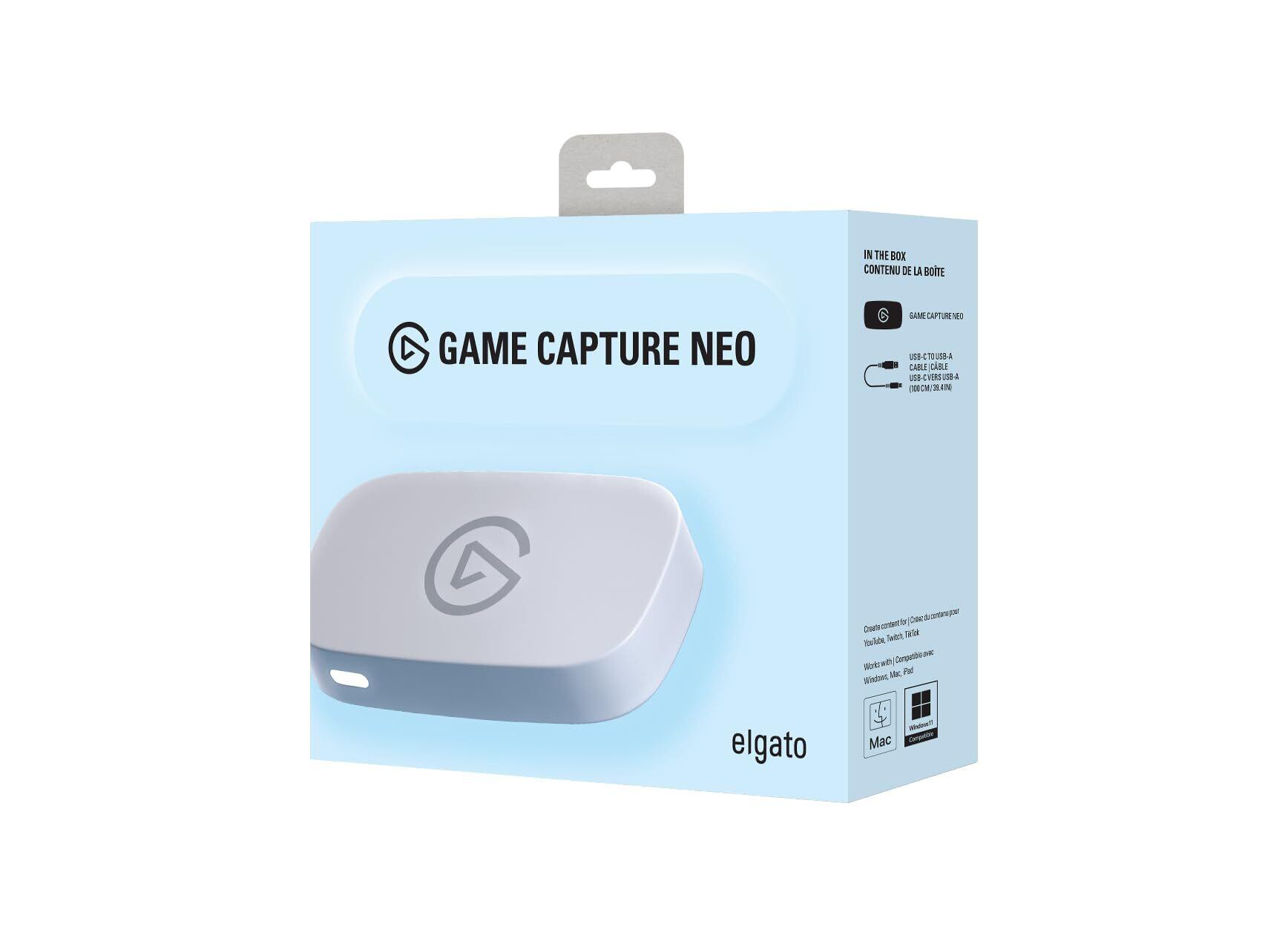 Elgato Game Capture Neo – USB ポータブルキャプチャカード 4K60 HDR パススルー、1080p60 ビデオ録画 – PS5/Xbox/Nintendo Switch 2/iPhone対応 – OBS、Quicktime、その他に最適 - プラグアンドプレイ/ノートPC、PC、Mac、iPad対応