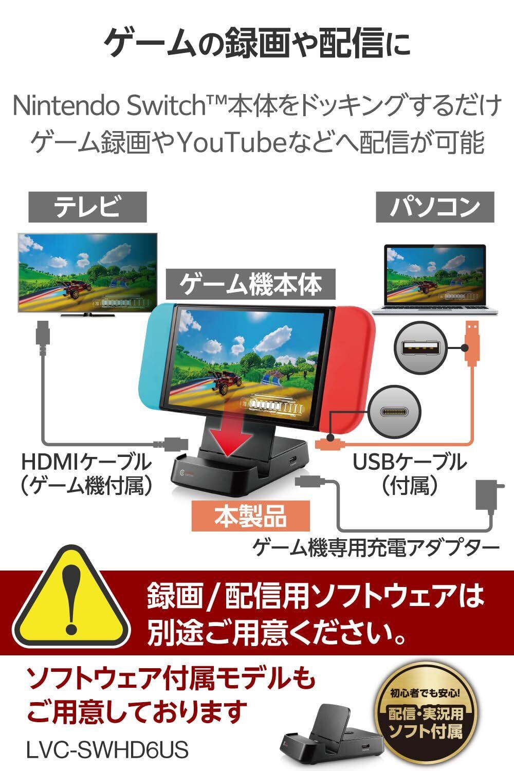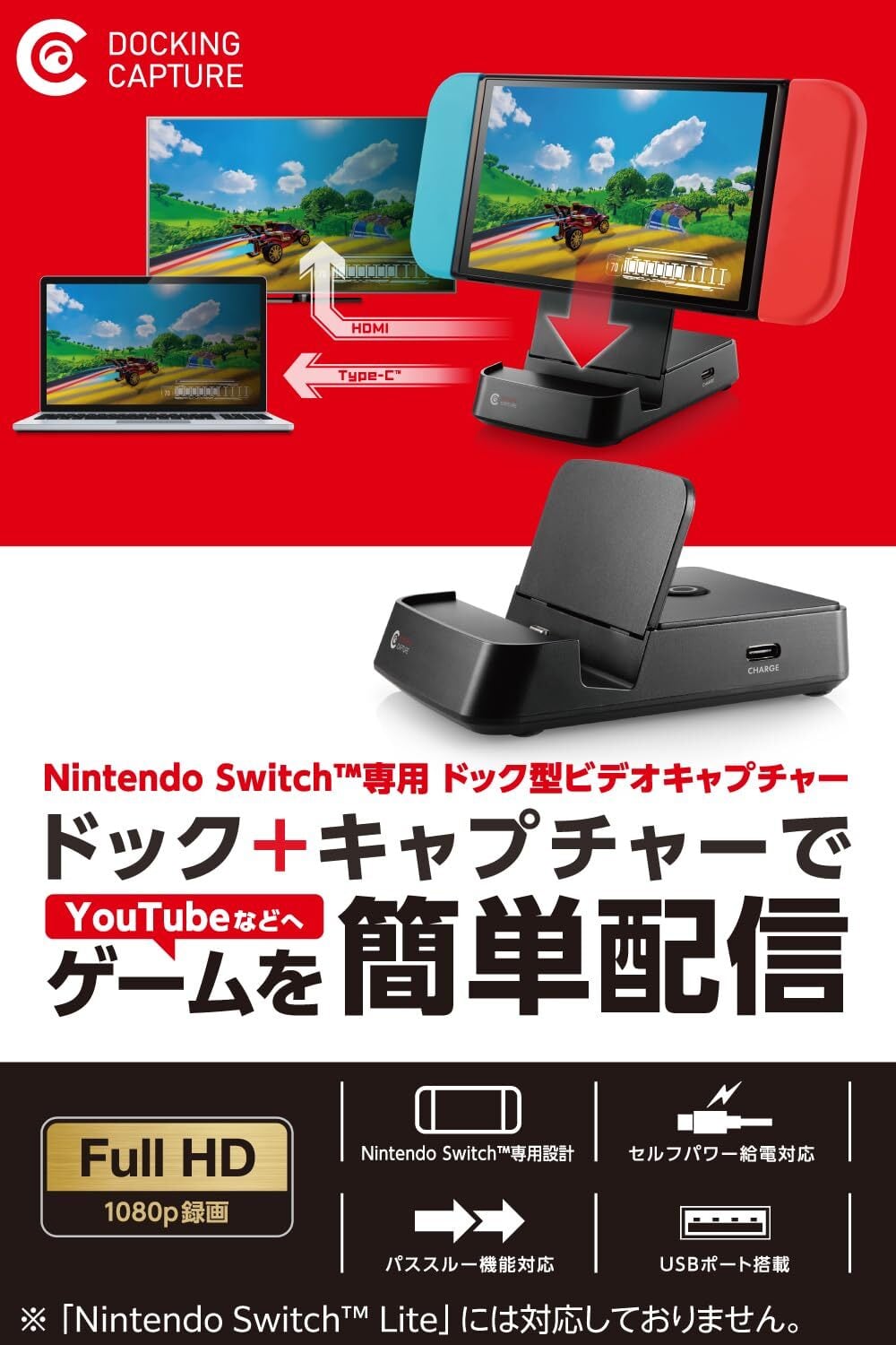 「Nintendo Switch(TM)用Dock+ビデオキャプチャー」の一体型の製品として使用できるので、キャプチャーからNintendo Switch(TM)を取り外す必要がありません。
