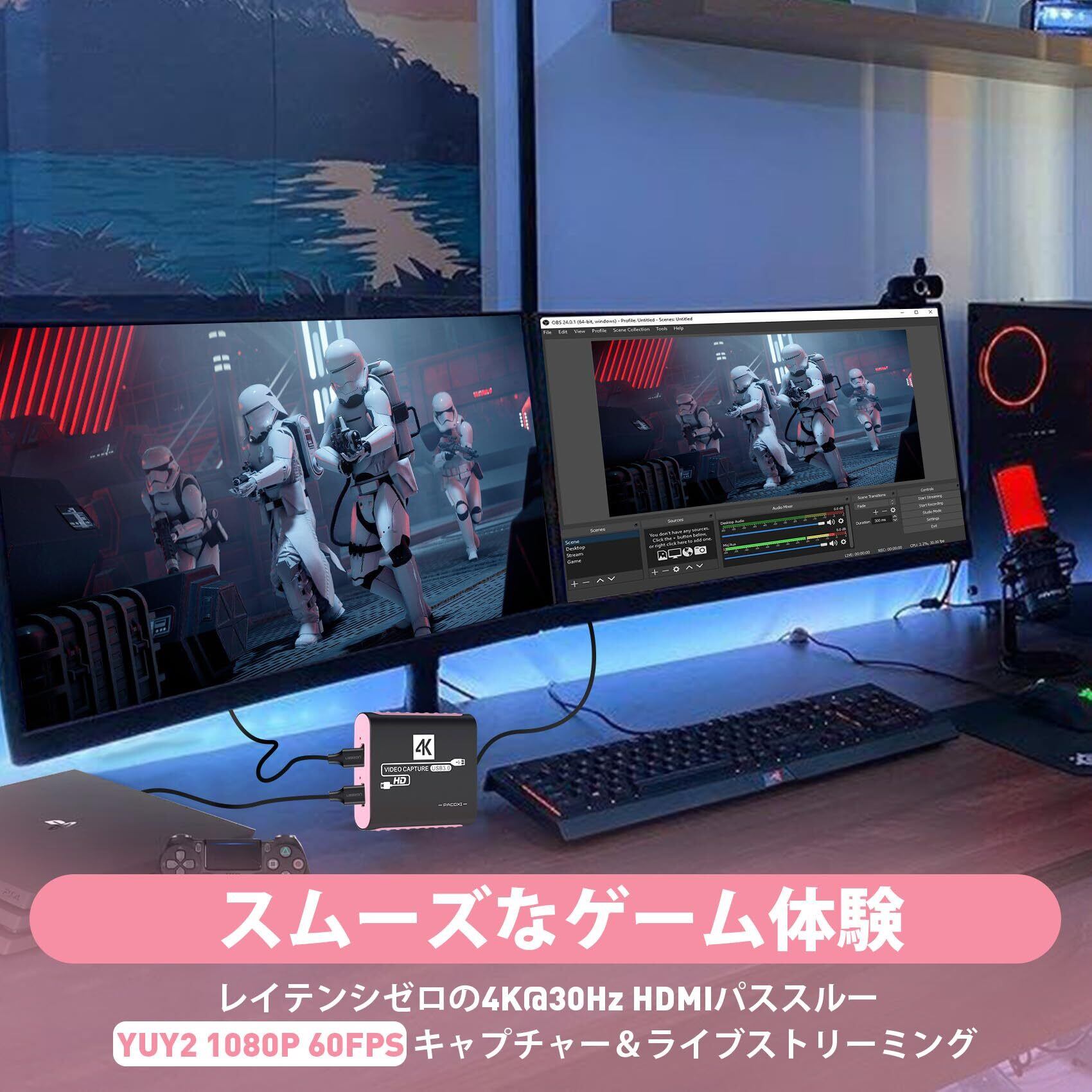 【4K低遅延スクリーン共有】キャプチャーボード パススルーは、4K 30Hzの直通機能を備えており、PlayStation 4/5、Xbox One Xなどの4K出力対応ゲーム機に接続できます。録画中でも低遅延の4K高画質ゲームを提供します。