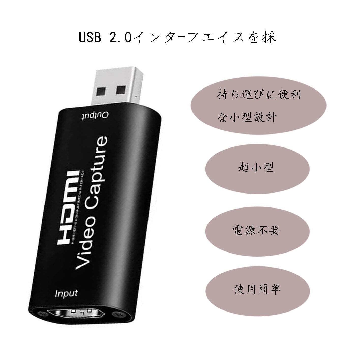 HUIKKJPキャプチャーボード HDMIキャプチャーカード 超小型 USB2.0対応 1080p ゲーム実況生配信・画面共有・録画・ライブ会議用 UVC(USB Video Class)規格準拠 電源不要 持ち運びに便利