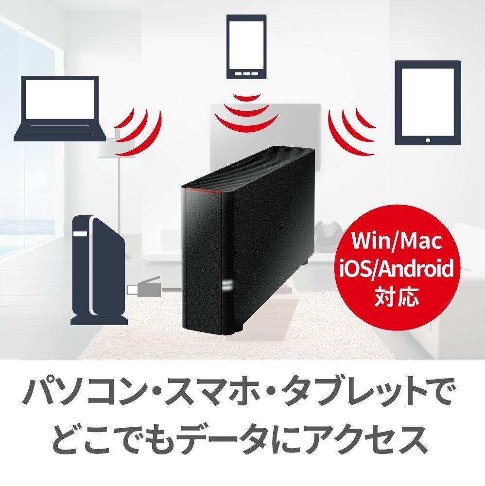 初めてのNASに最適! スマホ・タブレットで簡単設定。いつでもどこでもデータにアクセス!