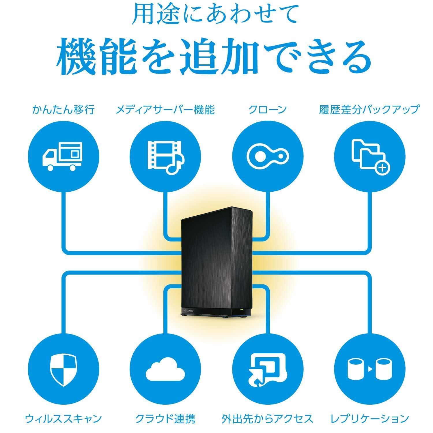 ■マルチギガビット(2.5GbE接続)対応およびデュアルコアCPU搭載により、読み込み速度が最大173.5MB/sと超高速なデータ転送を実現したネットワークHDD(NAS)です。 ■写真や動画など、大容量のデータをパソコンやスマホ、タブレットとシームレスに共有したり、バックアップすることが可能です。 ■NASの基本機能に加え、必要な機能を追加できる「パッケージ機能」を搭載。例えば、クラウドサービスとの同期や、セキュリティの強化を高めたりなど、自分好みにカスタマイズすることで、幅広い用途でご利用いただけます。 ■古いNASからの買い替え時に困りがちな、データの移行がカンタンにできる「データコピー機能」も搭載しています。