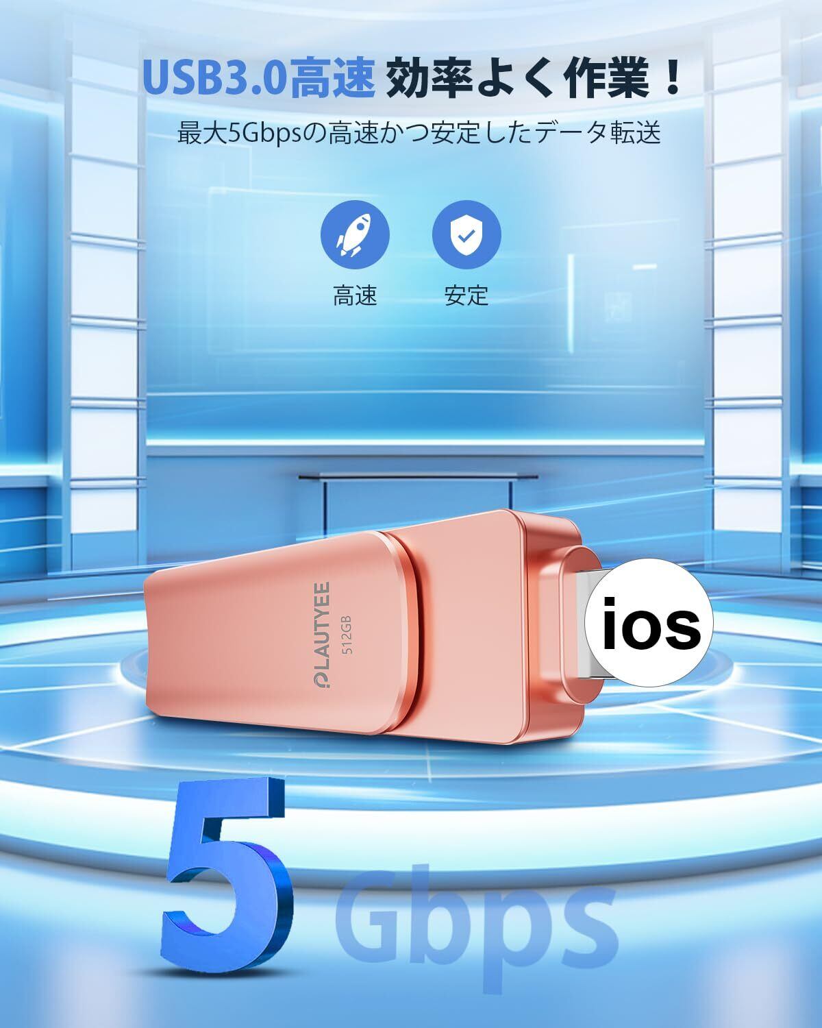 【2025新登場 アプリ不要】USBメモリ 512GB 4in1 高速 Phone usbメモリー 写真保存 回転式 iOS/Type-C/USB/Micro USB フラッシュメモリ 大容量 usb データ スマホ バックアップ Phone/Pad/PC/Macbook/Android対応 外付けメモリ 容量不足解消 ピンク Phone 16/15/14/13/12/SE/Pad Air各種対応