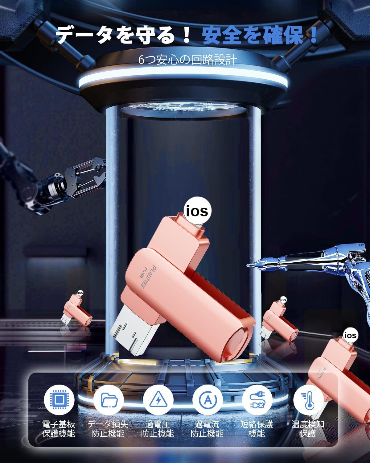 【4 IN 1 usbメモリ】Phone、Pad、Androidシリーズと100%互換性があります。usbメモリはPhone 15 Pro Max/15 Pro/15 Plus/15/Phone 14 Pro Max/14 Pro/14 Plus/14/SE 3/13 Pro Max/13 Pro /13/13 mini /12 Pro Max/12 Pro/12 /SE 2 /11 Pro Max/11 Pro/11 /XR/XS Max/XS /X /8 Plus/8/i Pad Air(第1/2/3世代)/ MacBook(Pro/Air)/iPad mini(第1/2/3/4/5世代)/i Pad(第5/6/7/8/9世代)アイフォン全シリーズ/ パソコン/ Type-Cスマホ/ Androidスマホ /タブレットなどとデータ移行互換性のあるusbメモリー。