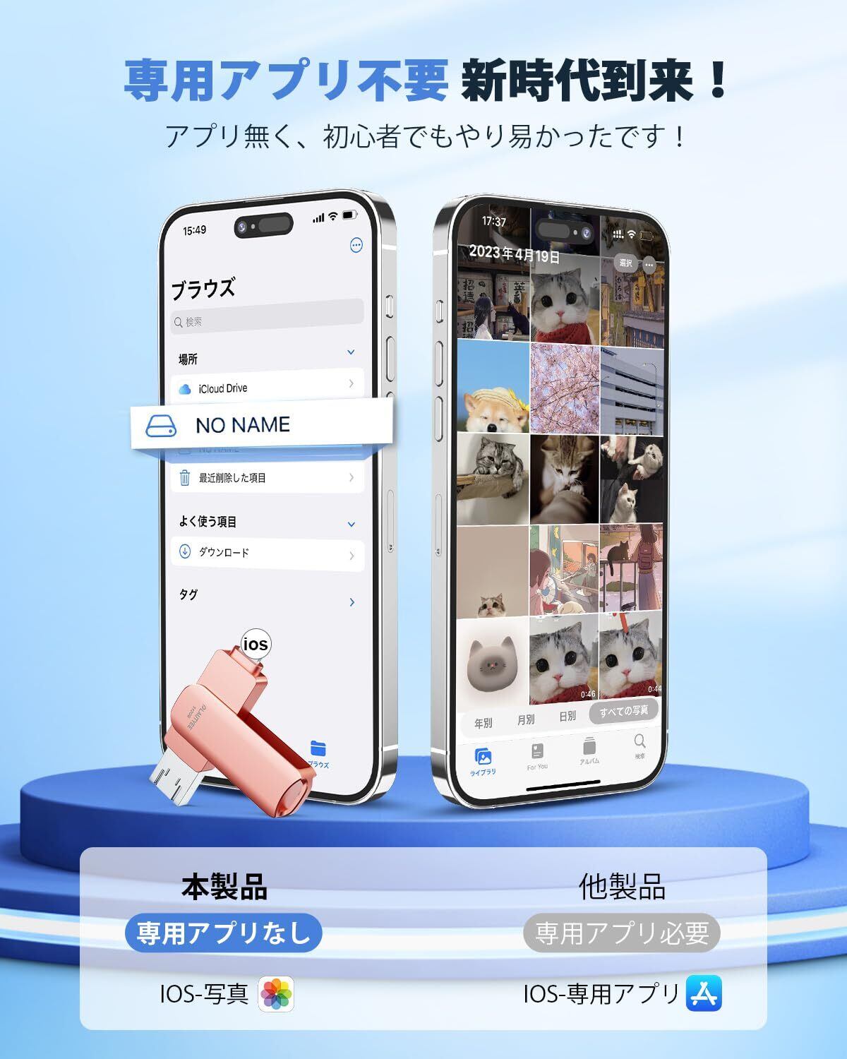 【専用アプリ不要! 新時代到来!】USBメモリは特別なアプリが不要で、スマホの「アルバム」から写真をusbメモリに直接コピーできます。IOS/Android/PC/Micro USBにより、アプリをダウンロードすることなく、スマホからPCへ簡単にバックアップできるので、初心者でも簡単に操作できます。