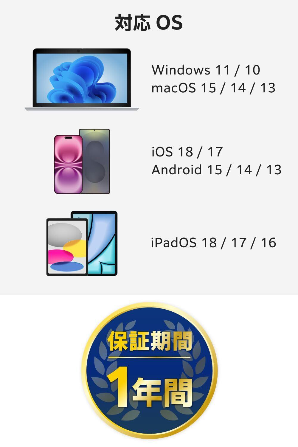 ■Windowsパソコン、Mac、スマートフォン、タブレットなど異なるデバイス間のデータ移動も本製品1個でできます。
