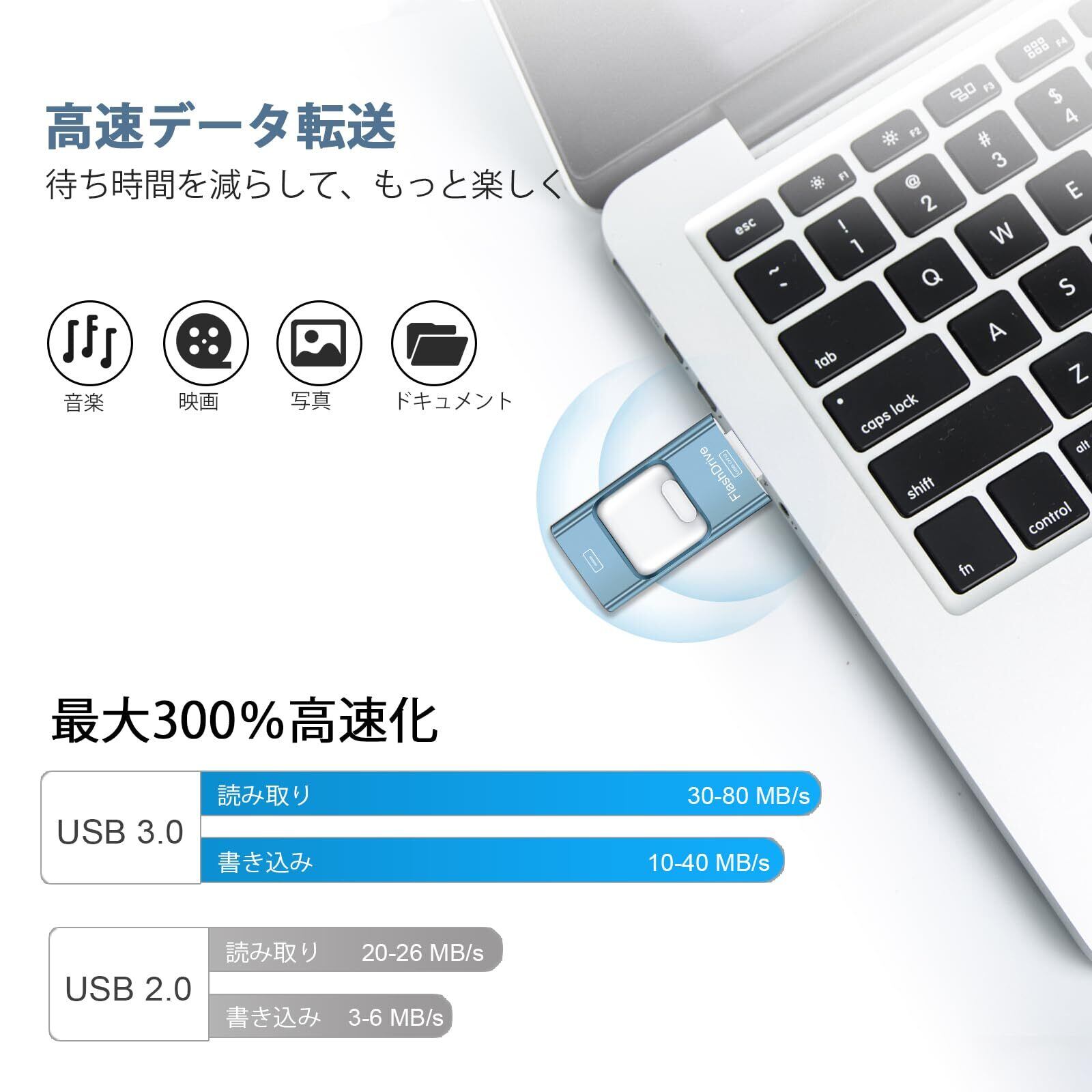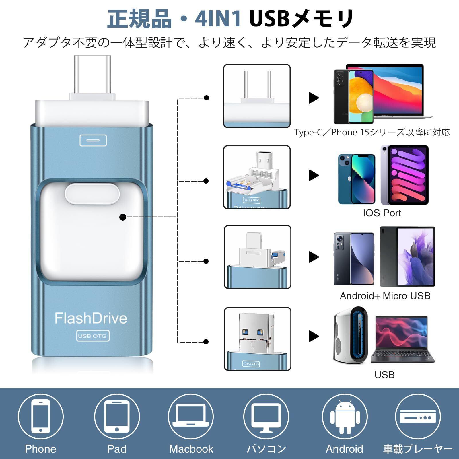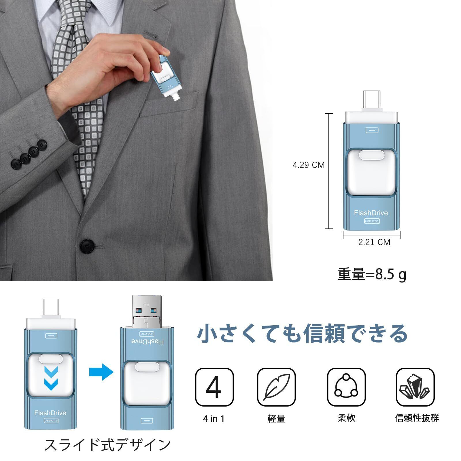 【多機種対応】 本USBメモリは、iOS/USB/Type-C/micro USBの4種類の接続端子を搭載しており、PC・Android・MacBook・iOS機器で手軽にデータをバックアップできます。Phone 17 / 17 Air/ 17 Pro / 17 Pro Max/Phone 16Pro Max/16 Pro/16 Plus/Phone16/15 Pro Max/15 Pro/15 Plus/15/14 Pro Max/14 Pro/14 Plus/14/SE3/13シリーズ/12シリーズ/11シリーズ/XR/XS/X/8/SE2、Pad Air(第1〜3世代)、Pad mini(第1〜5世代)、Pad(第5〜9世代)、MacBook(Pro/Air)、各種Androidスマホやタブレットなど幅広いデバイスと互換性があります。