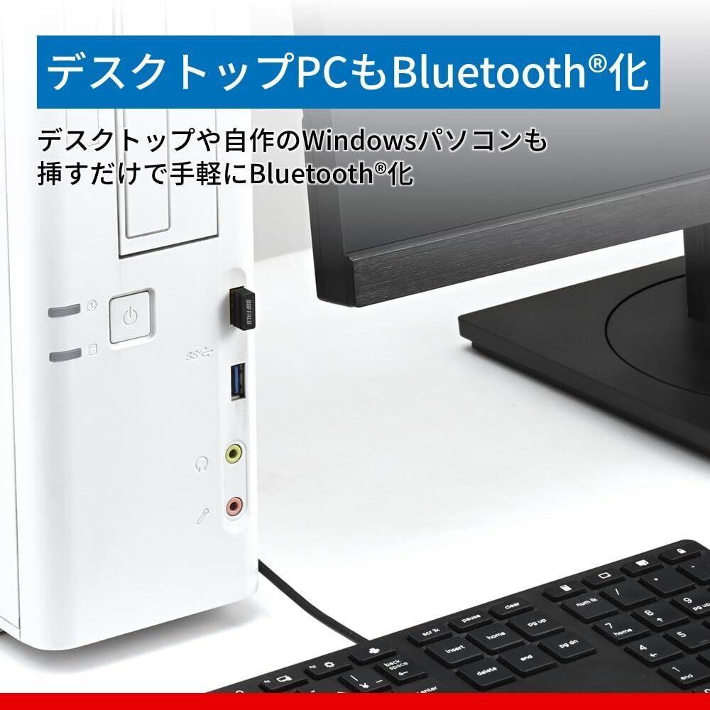 バッファロー Bluetooth 5.4 対応 USB アダプター 小型 【 Windows 11/ 10 / 8.1 対応】 レシーバー ドングル 後付け 子機 ブルートゥース コンパクト BSBT54D205BK