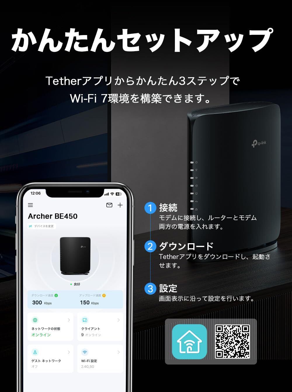 TP-Link WiFi ルーター WiFi7 無線ルーター 高速 BE7200 10Gポート 5764+1376Mbps MLO EasyMesh HomeShield Archer BE450
