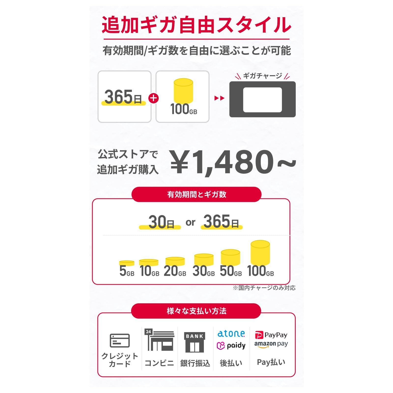 【完全買い切り型】契約・返却不要、月額料金なし、追加ギガ(国内)のリチャージも対応