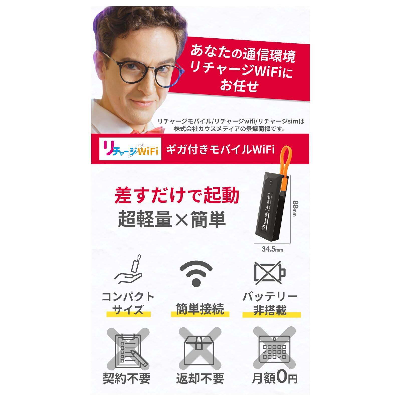 【リチャージWiFi】100ギガ付き/365日 バッテリーレス WiFi モバイルルーター 契約返却無し 月額費用無し 簡単ギガチャージ リチャージ M4【maca4-100GB/365】