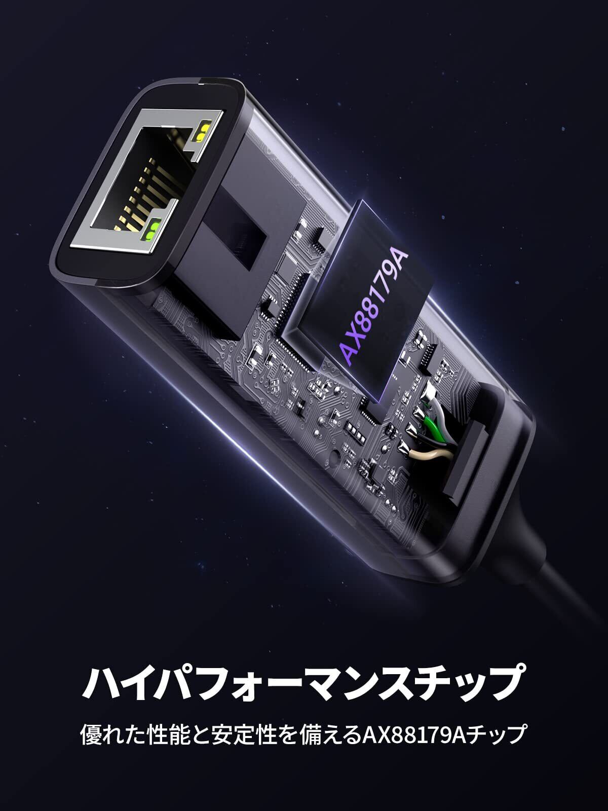 【ギガビットイーサネット】UGREEN USB Type C LAN 変換アダプタはUSB 3.0の性能を活かし、ギガビットの帯域に完全対応しています。1000Mbpsのネットワークスピードで大容量ファイルにアクセスすることが可能です。