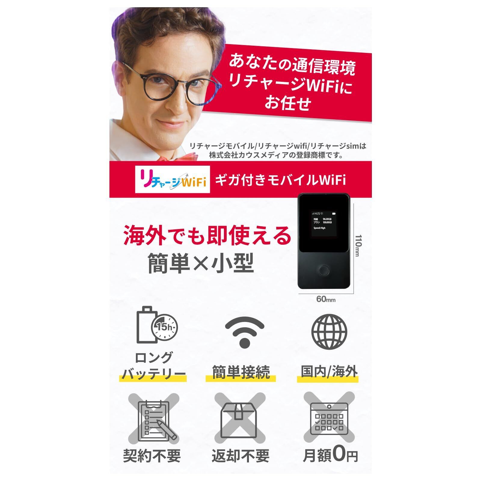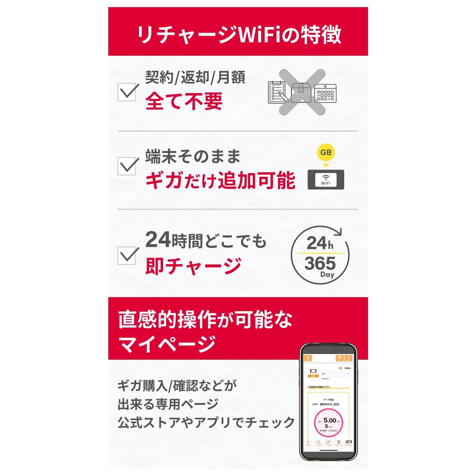 【リチャージWiFi】ロングバッテリー 100GB+世界3GB 間使える ギガ付 ポケット 小型 契約返却無し 月額費用無し 簡単ギガチャージ 国内海外利用可能 電源ONで即時使える WiFi モバイルルーター 【T8ブラック-日本100GB+世界3GB/365日間】