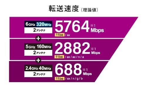 【最新規格Wi-Fi 7】6GHz/5GHz/2.4GHzの3つの帯域すべてがWi-Fi 7に対応した、トライバンドWi-Fi 7ルーターです。 【MLO&320MHz幅通信】3つの帯域を同時に利用できるMLOと、6GHz 320MHz幅通信に対応。Wi-Fi 7ならではの高速通信を実現します。※端末側も対応している必要があります。 【可変外付けアンテナ】独自設計の外付けアンテナを採用。ご利用環境に合わせてアンテナを調整することで、広範囲を安定したWi-Fiでカバーできます。 【10G回線を活用】10Gbps通信に対応したINTERNETポートを搭載し、回線速度を活かした高速Wi-Fi環境の構築をサポートします。※INTERNETポートのみ10Gbps対応 【EasyMesh対応】お持ちのEasyMesh対応ルーターと組み合わせてメッシュWi-Fiをお使いいただけます。本機を2台組み合わせれば、Wi-Fi 7メッシュ環境の構築も可能です。