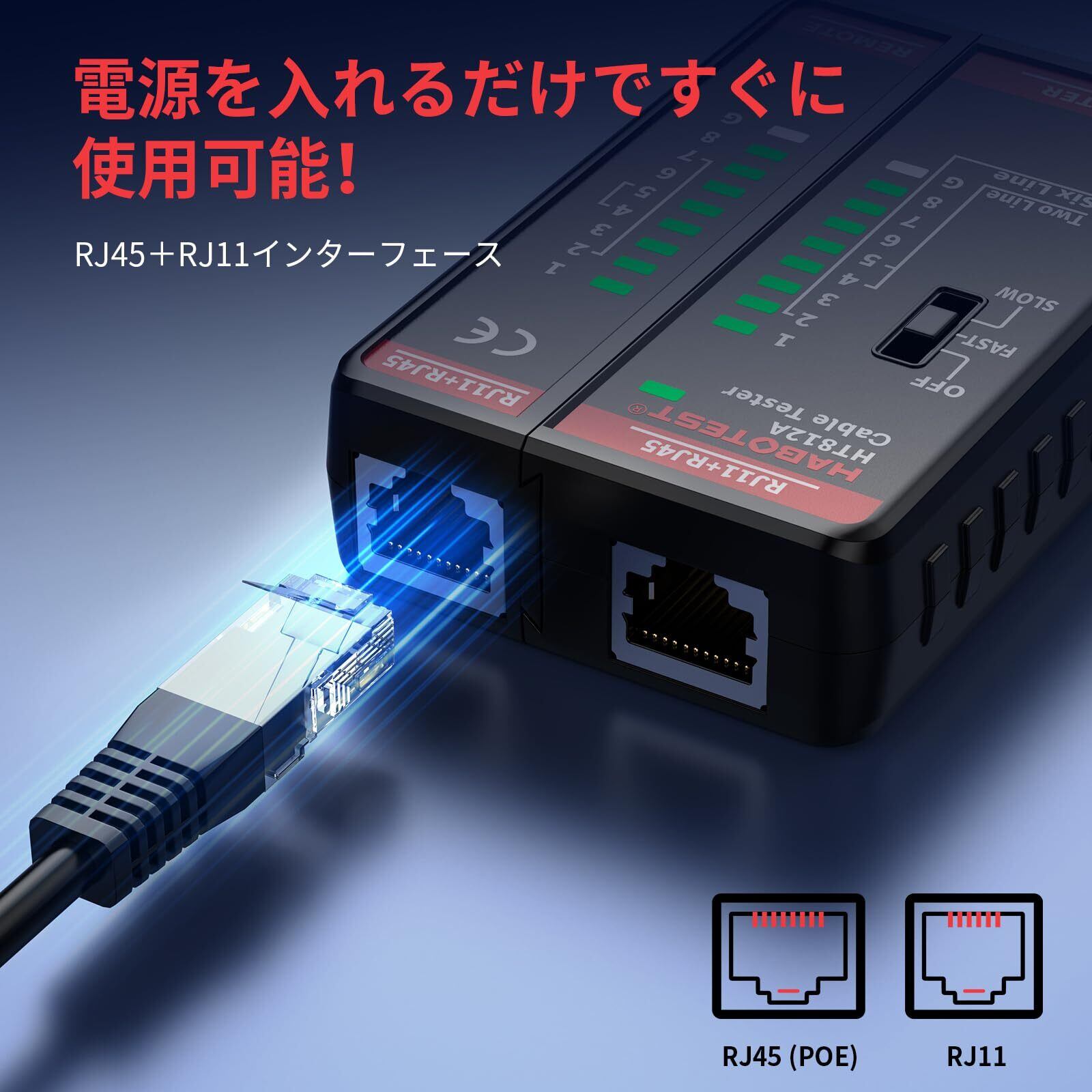 LAN電話線対応 2 in 1 ケーブルテスター :この2in1 lanテスターは RJ45 + RJ11 共通インターフェースを搭載し、8P/FTPシールド・非シールドLANケーブル6P/4P/2P 各種電話線のテストに対応しています。差し込むだけで即座に診断でき、複雑な設定は不要です